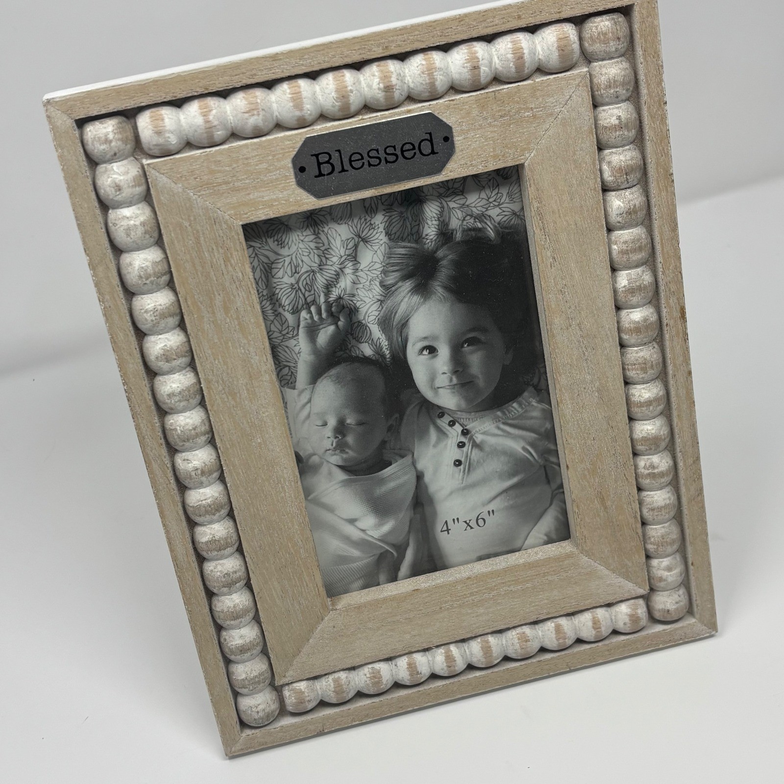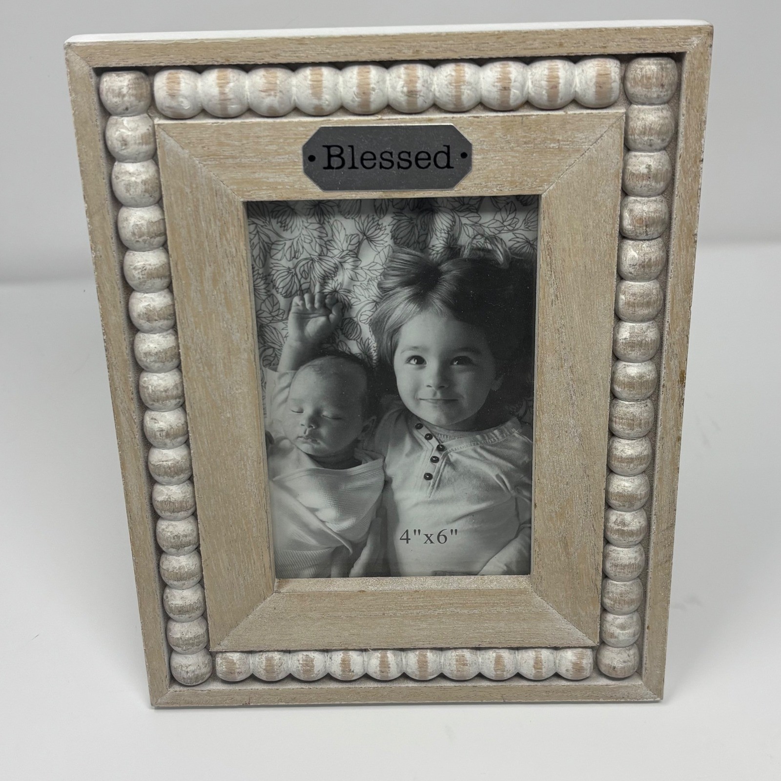 Wood Beaded Photo Frame Blessed 4x6 Picture Display Tabletop Decor