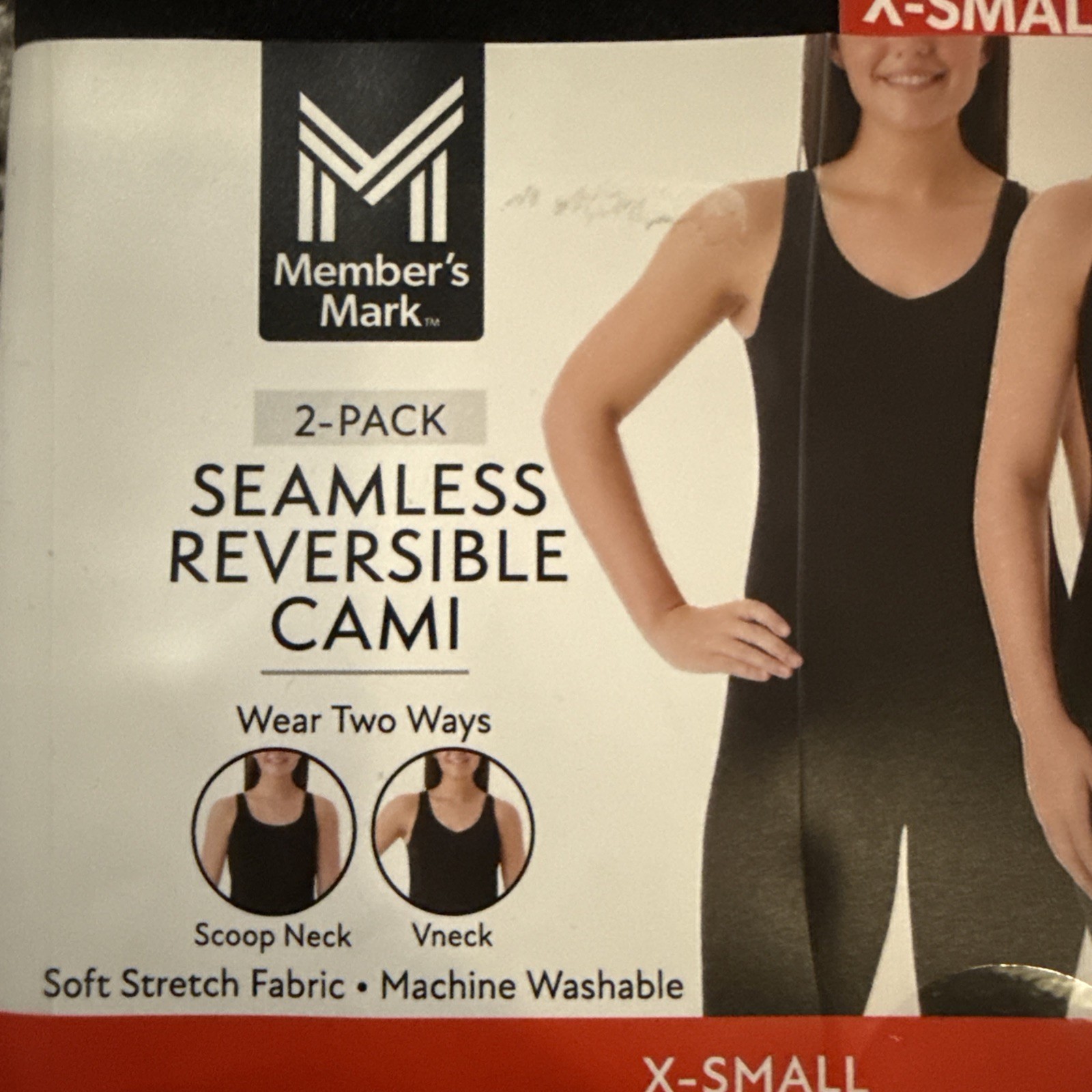 как выглядит Members Mark Womens 2-Pack Seamless Reversible XS Cami Black NWT Free Shipping фото