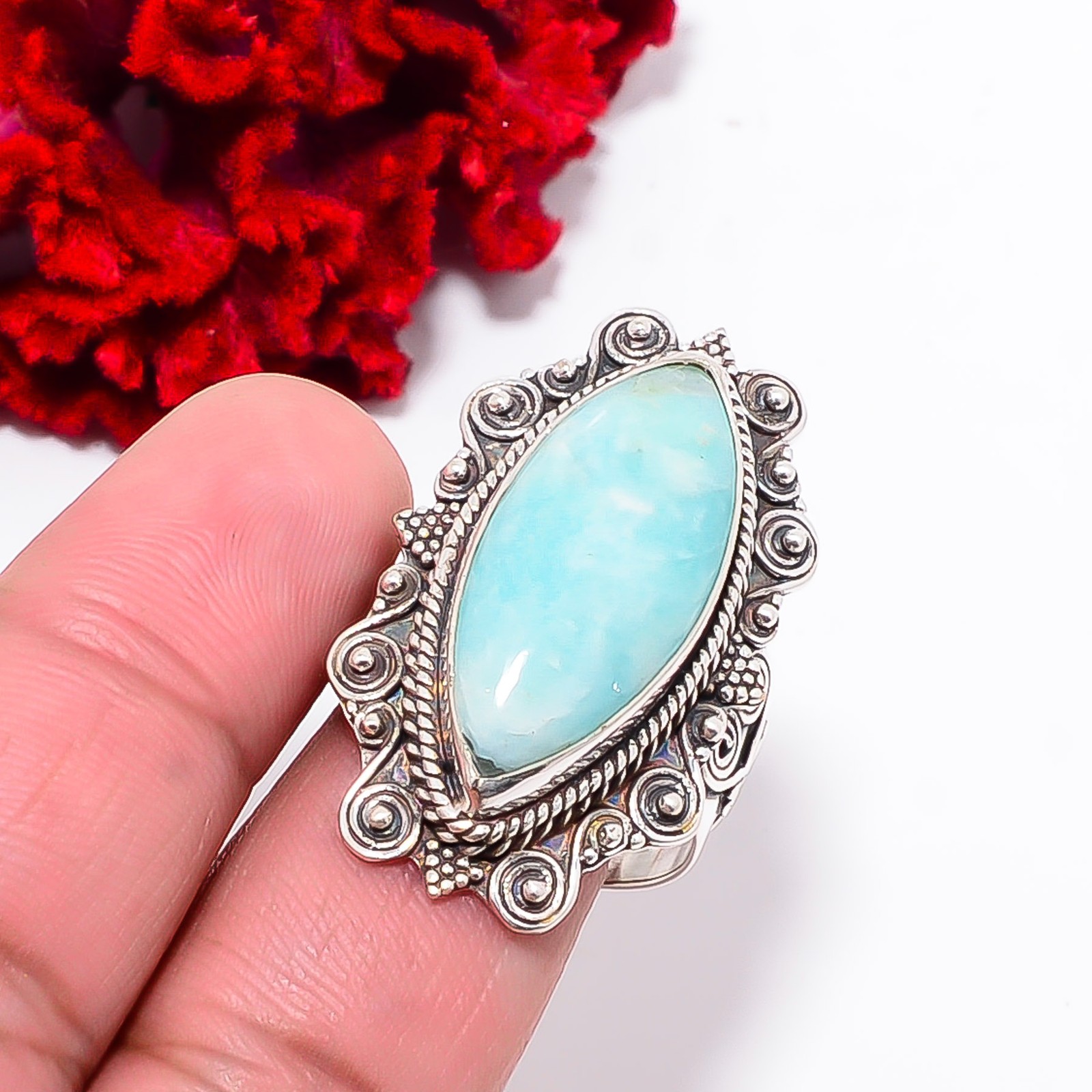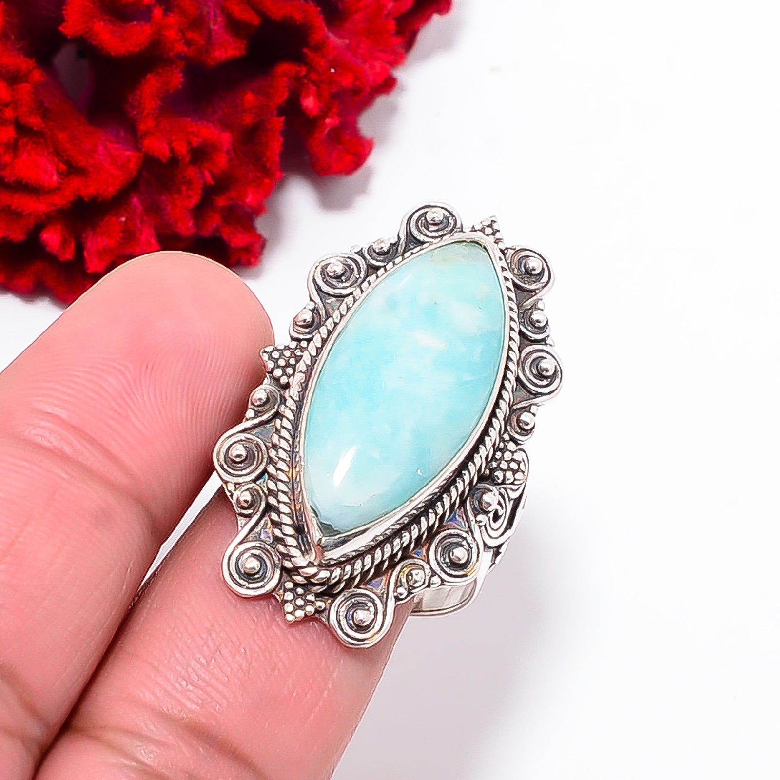 Natural Larimar Fine Art Oxidised 925 Sterling Silver Ring S.10 R102434