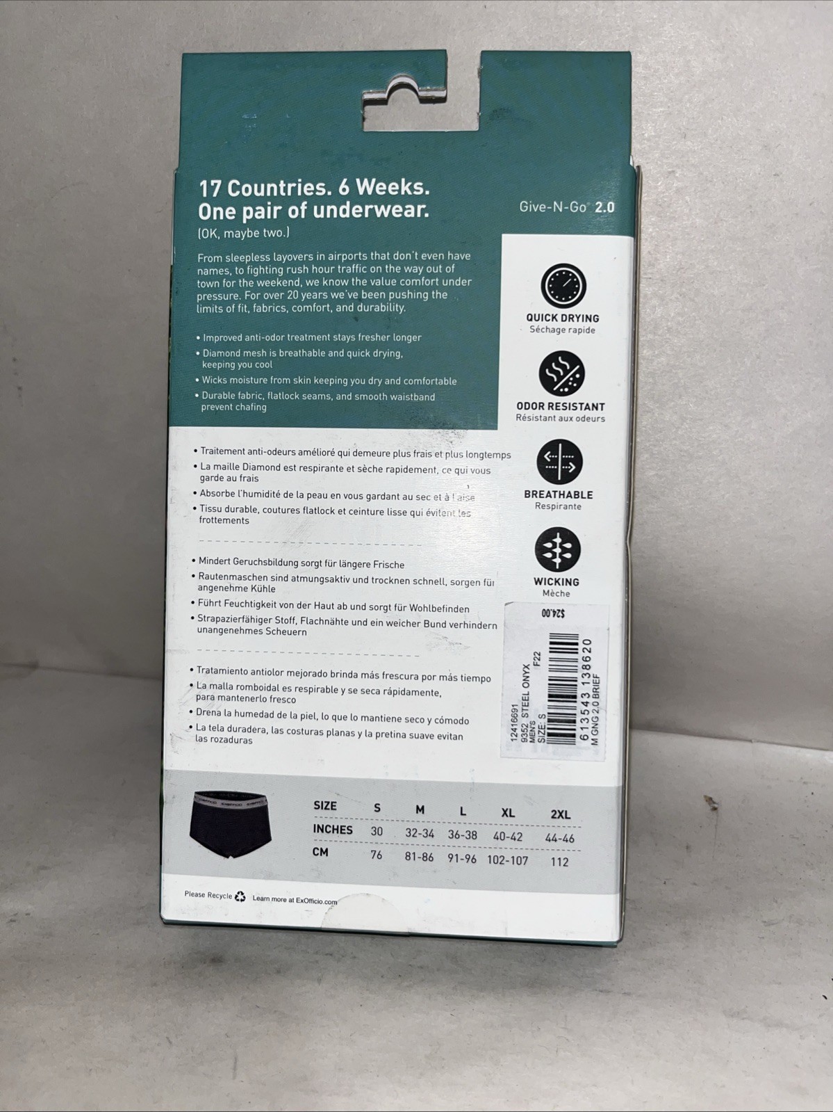 Size S- Men s Exofficio Give-N-Go 2.0 Brief Steel Grey One Pair