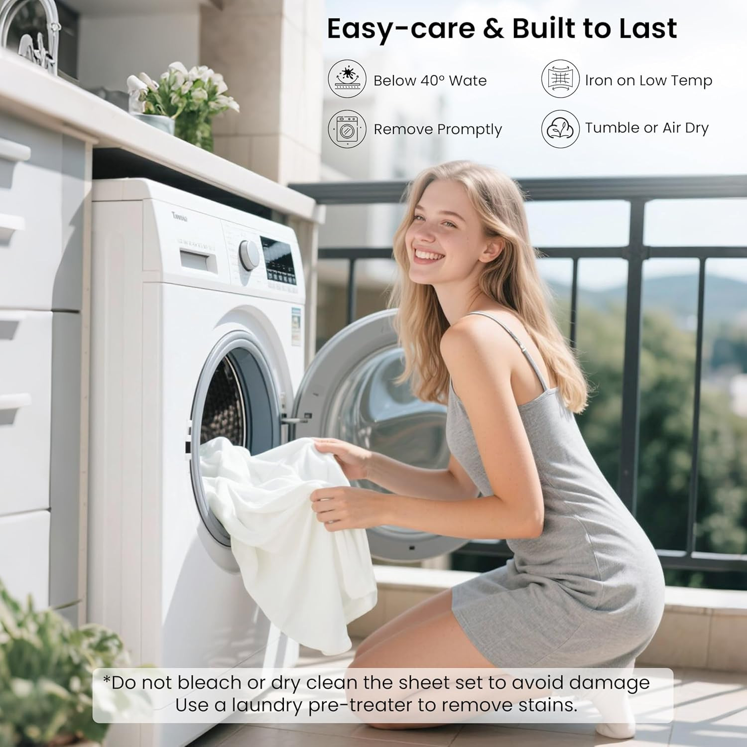 как выглядит Queen Size Bamboo Sheet Set, 4-Piece Cooling Sheets Made from Bamboo-Derived Ray фото