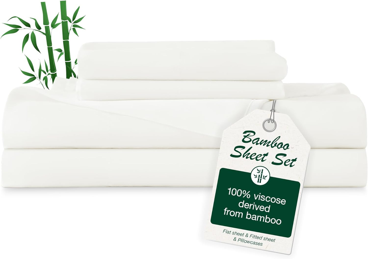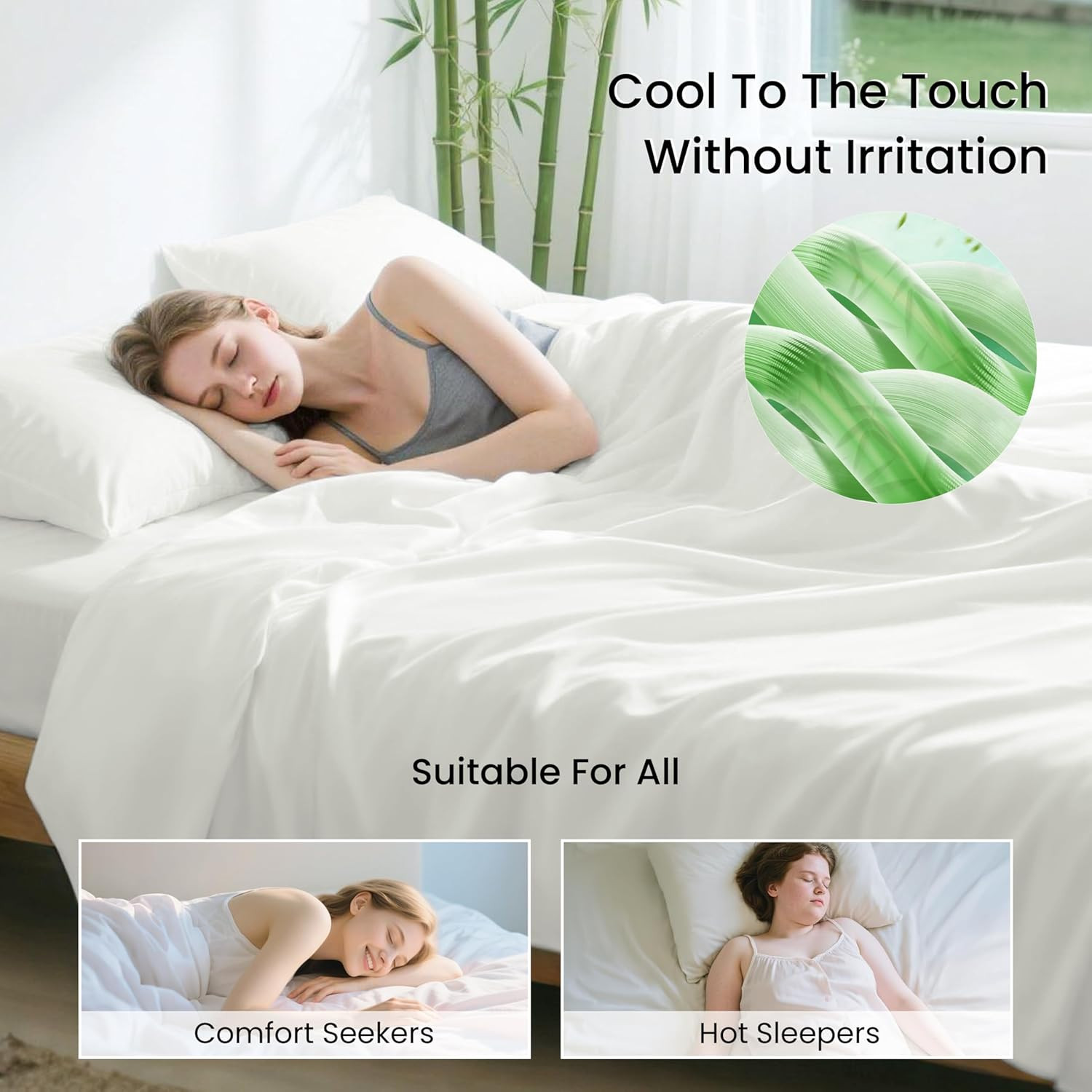 Queen Size Bamboo Sheet Set, 4-Piece Cooling Sheets Made from Bamboo-Derived Ray
