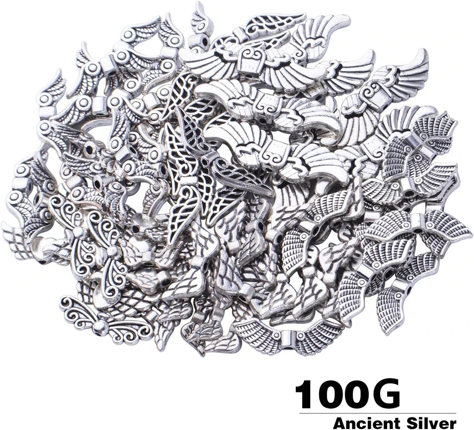 как выглядит Antique Silver Angel Wing Spacer Beads - Tibetan Alloy Fairy Wing Charm Beads fo фото