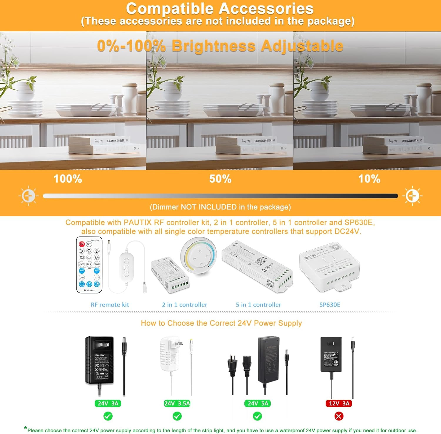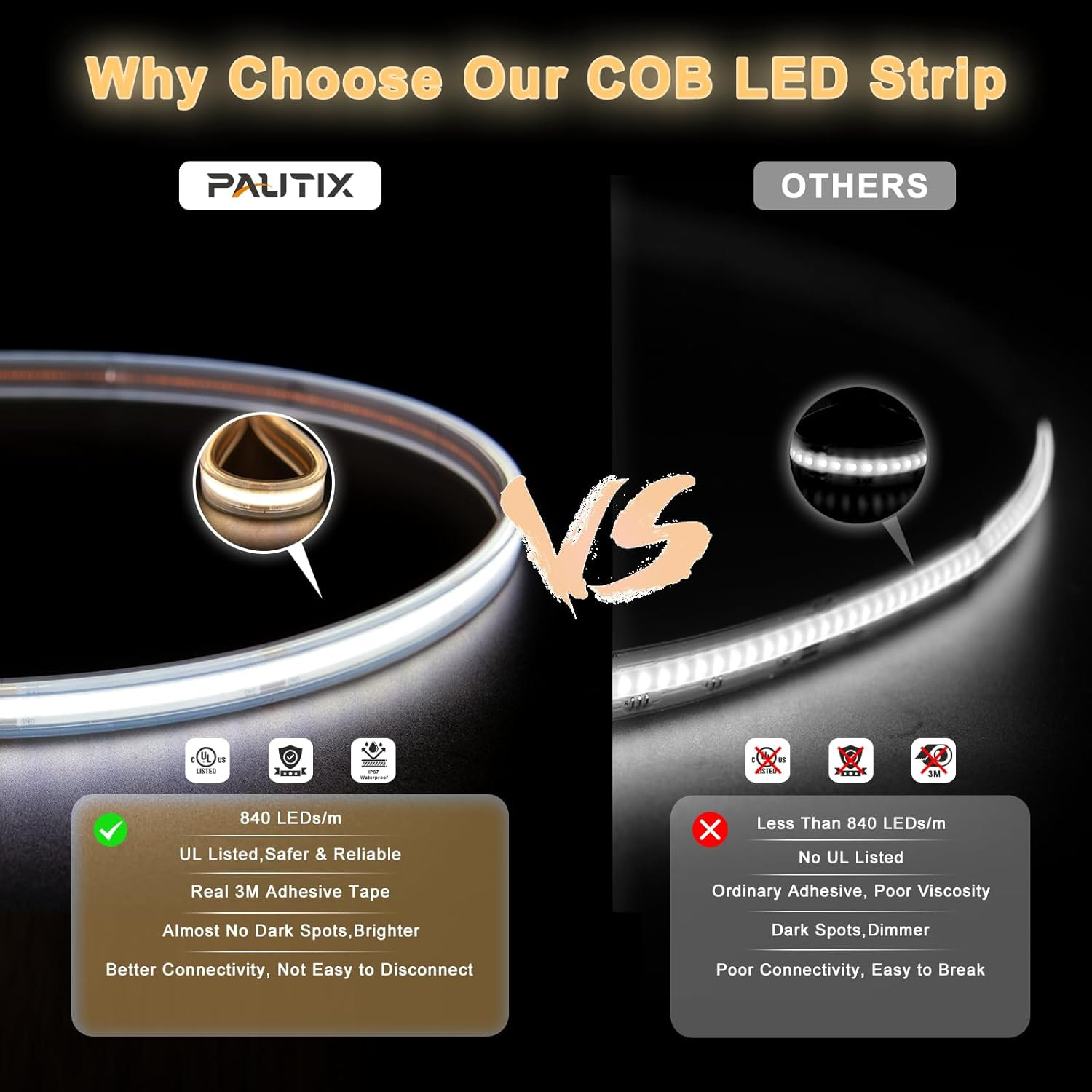 PAUTIX COB LED Strip Light IP67 Waterproof 20Ft/6.1M,6000K Daylight White 2928 L