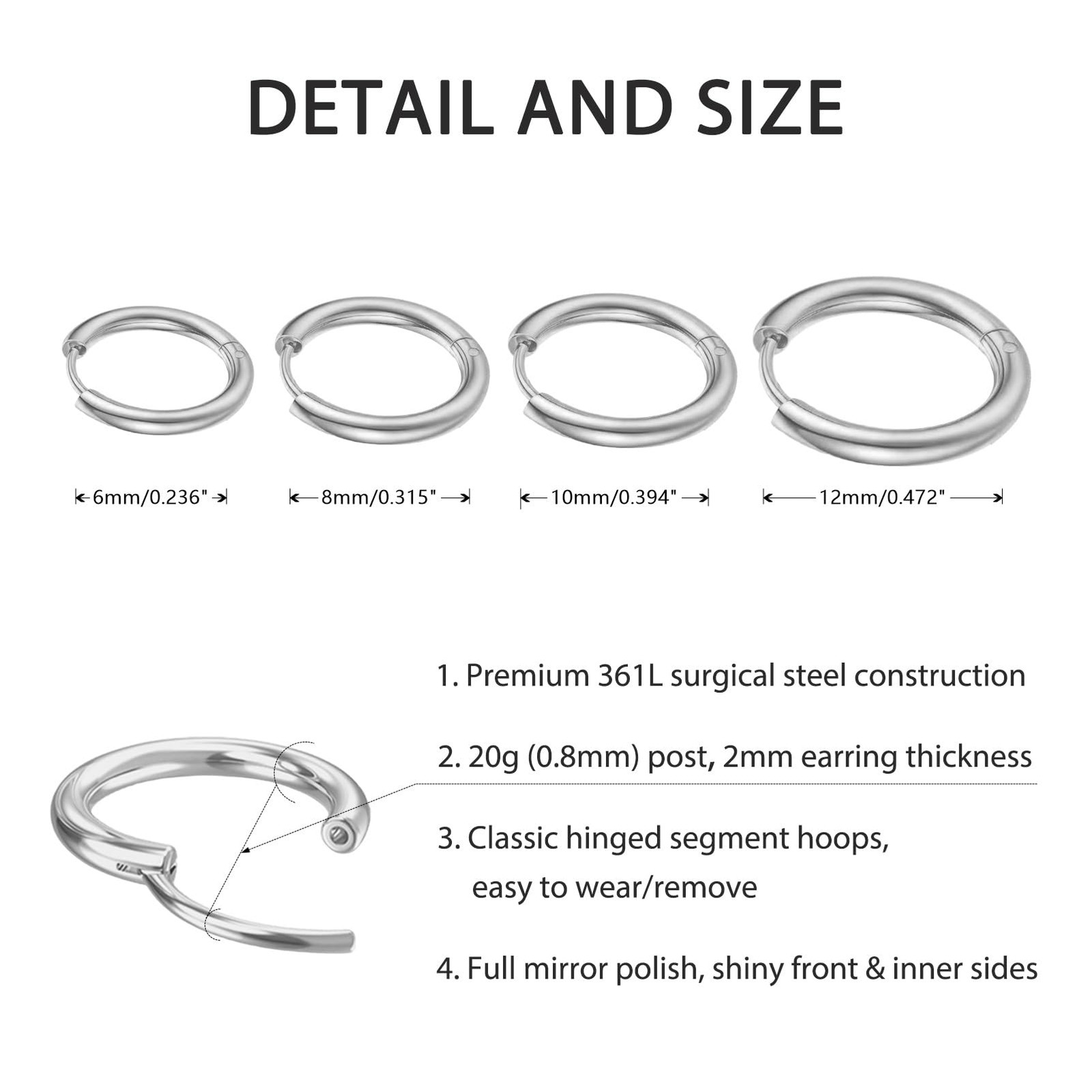 как выглядит Small Silver Huggie Hoop Earrings Set for Women, 4 Pairs Silver/4 фото