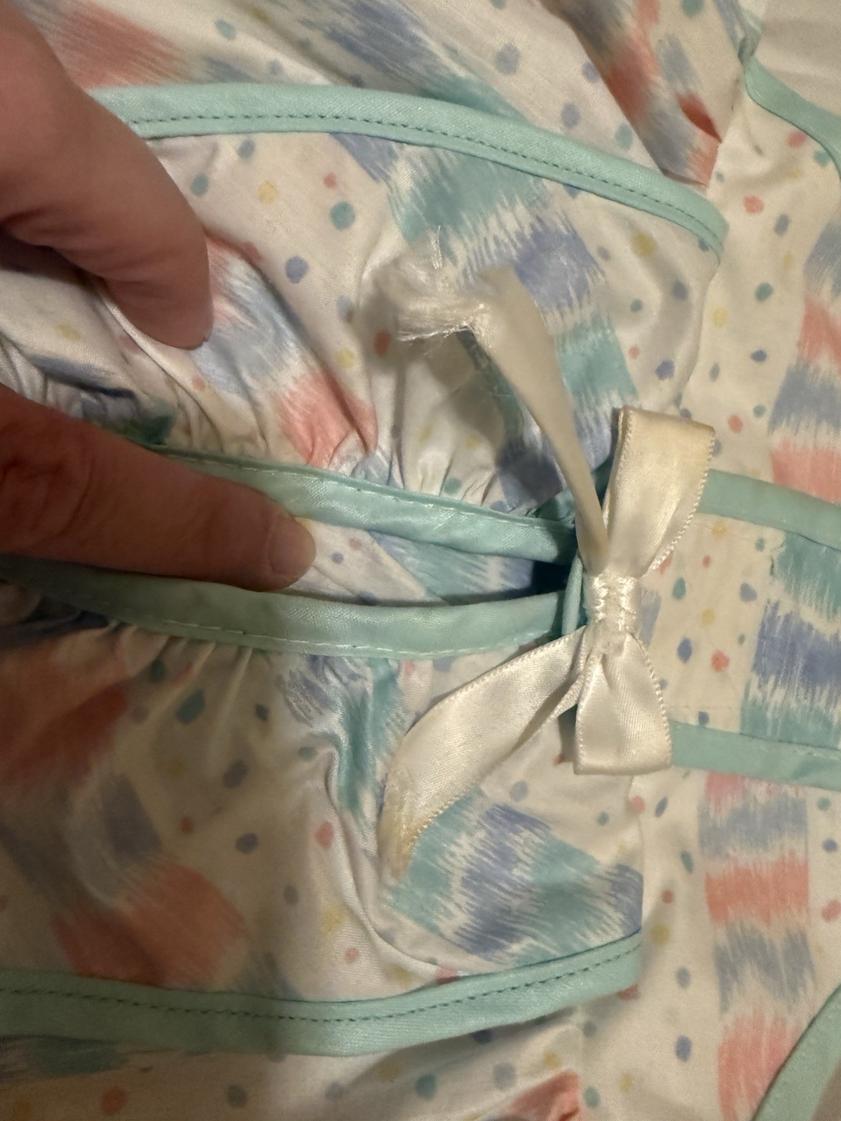 как выглядит Vtg Fabric Diaper Stacker Pastel Nursery Storage Ruffled Hanging Organizer фото