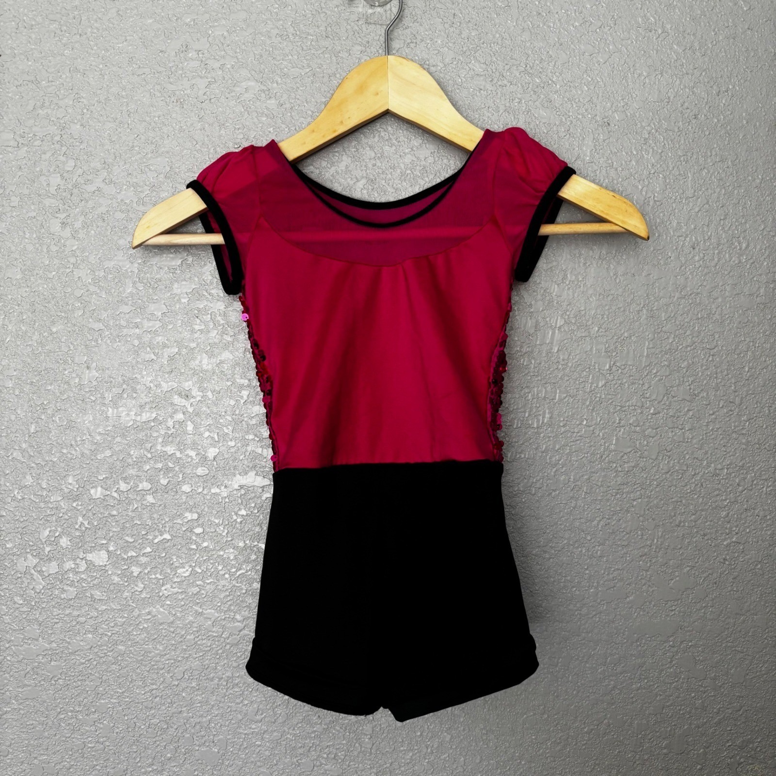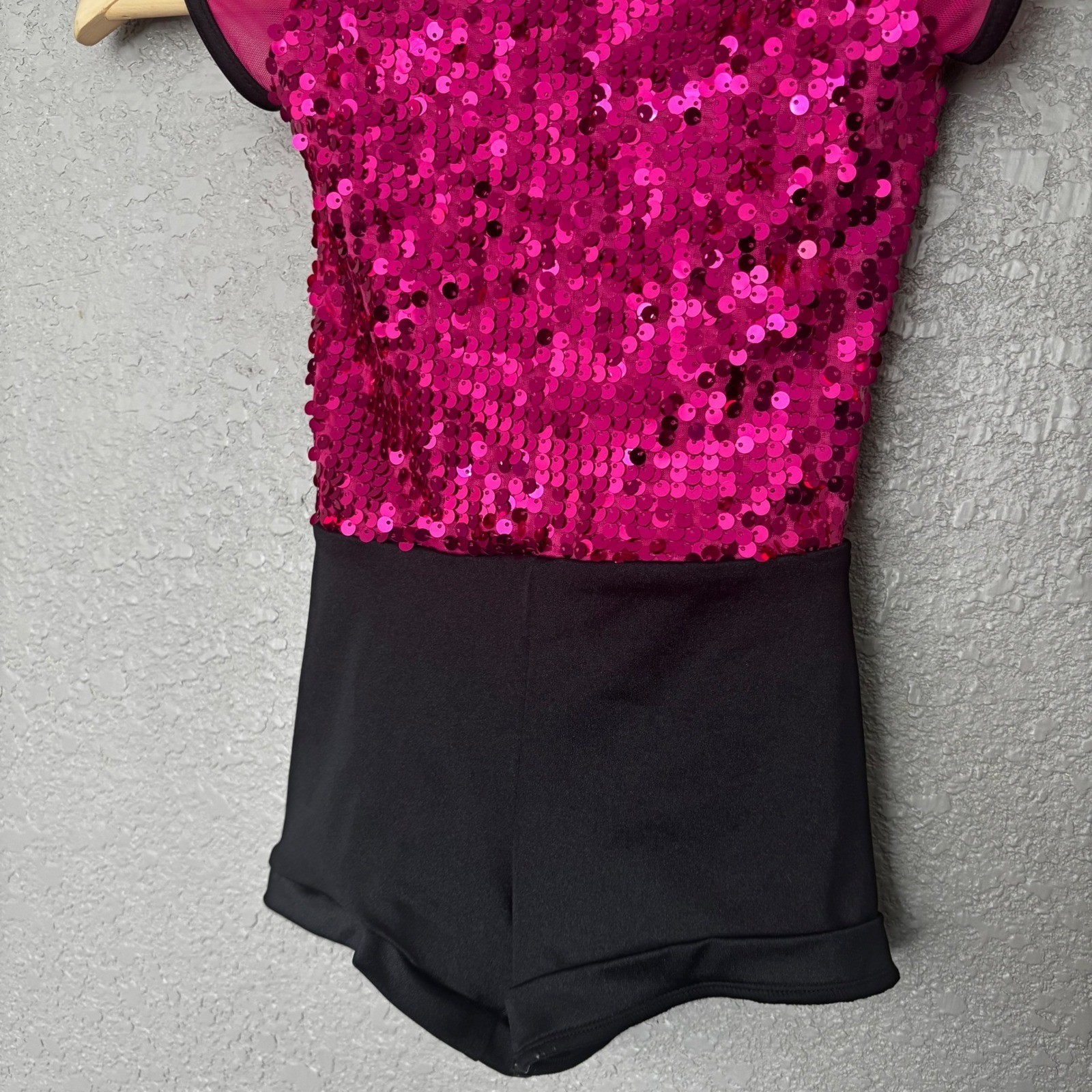 Weissman Kids Sparkle Sequin Dance Leotard Costume Hot Pink Black Size SC