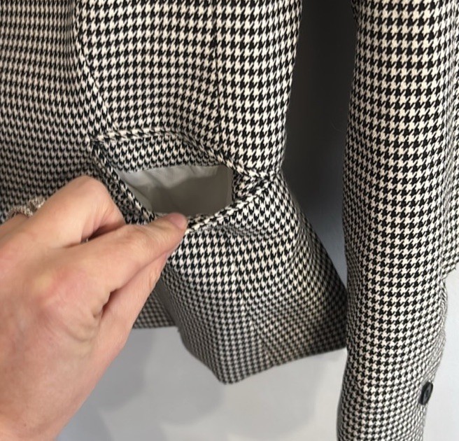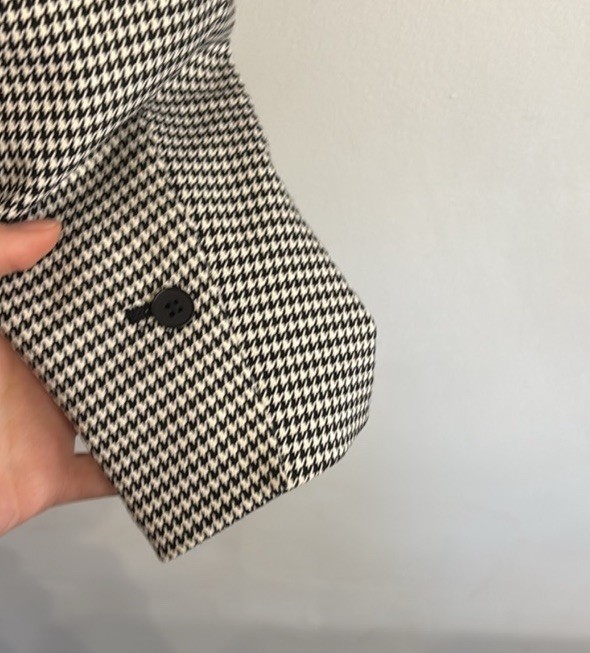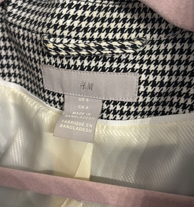 как выглядит H M Houndstooth Blazer Jacket Black White Size 6 Notch Lapel Lined фото