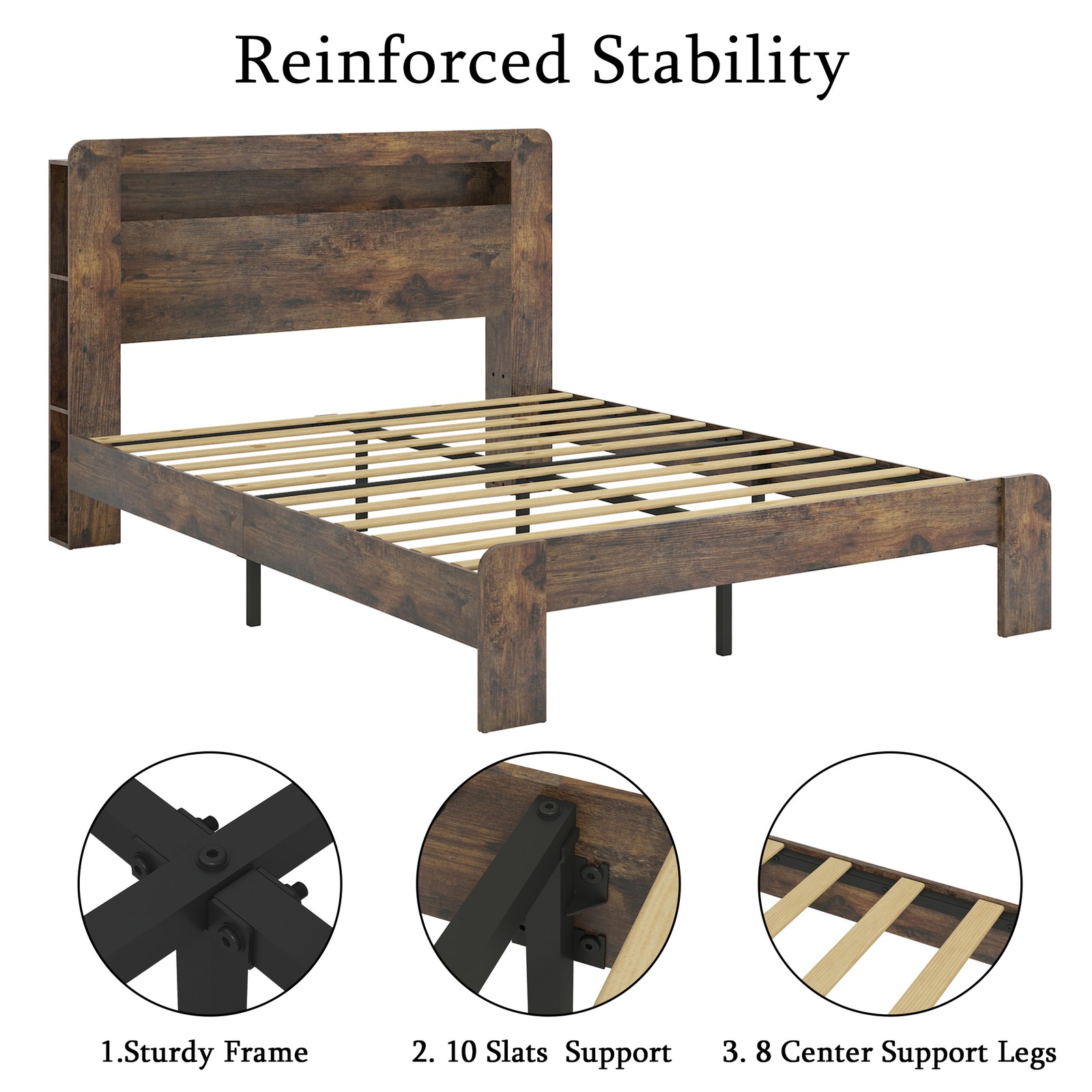 Bed Frame Full Size, Wood Platform Bed Frame with Storage LED Light Headboard