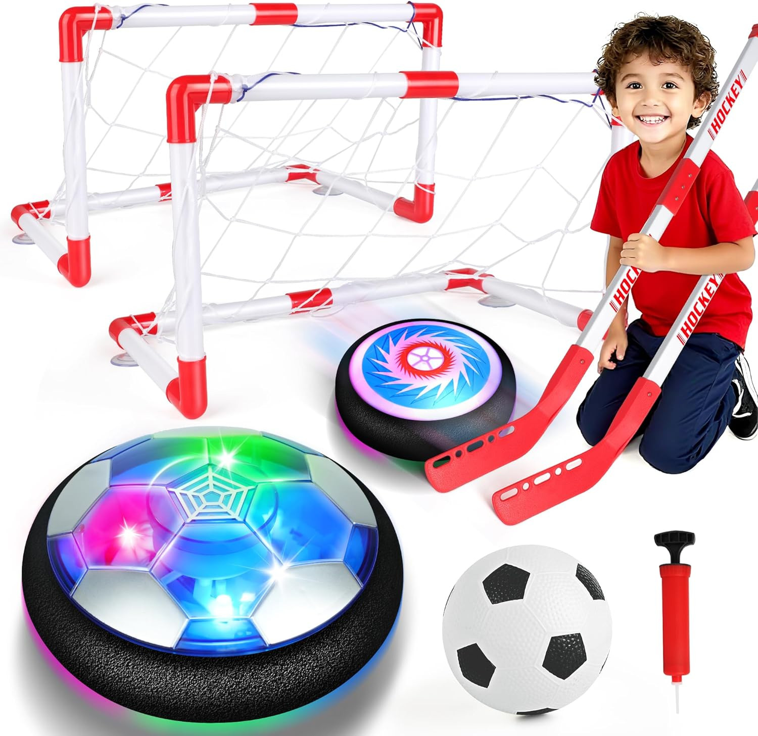 3-In-1 Hover Soccer Ball Set, Including 2 LED Hover Hockey and Soccer Ball Toys,