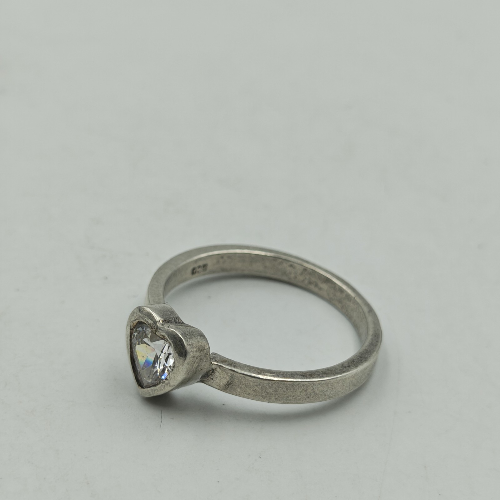 как выглядит Vintage Sterling Silver 925 Heart Cut Cubic Zirconia Ring Sz 8 фото