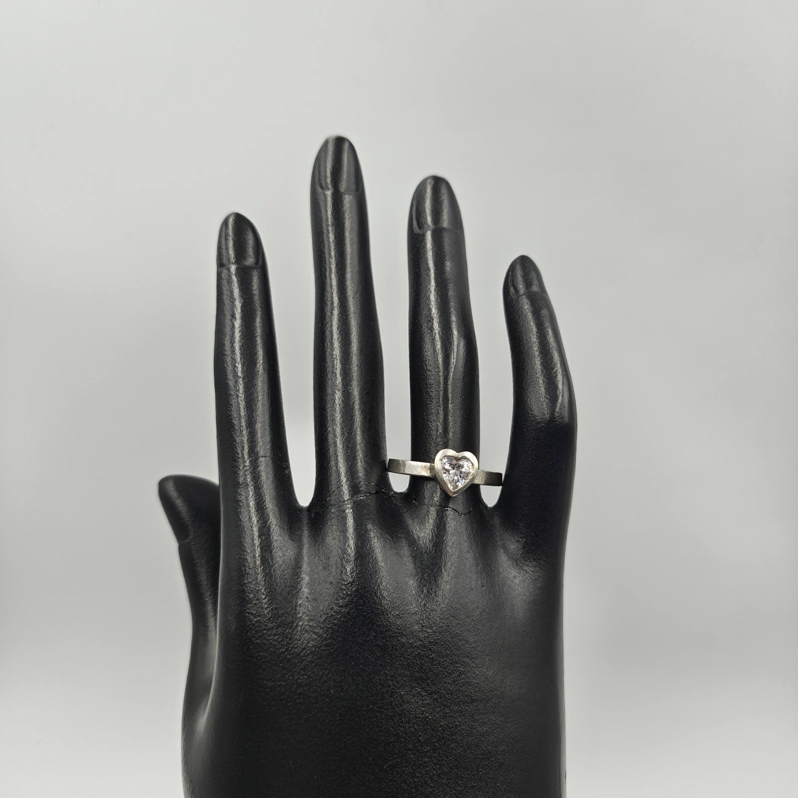 Vintage Sterling Silver 925 Heart Cut Cubic Zirconia Ring Sz 8