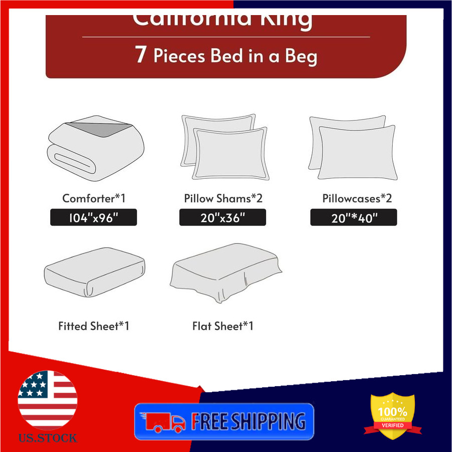 7 Pieces California King Comforter Set, Reversible Bed in a Bag Cal King Size