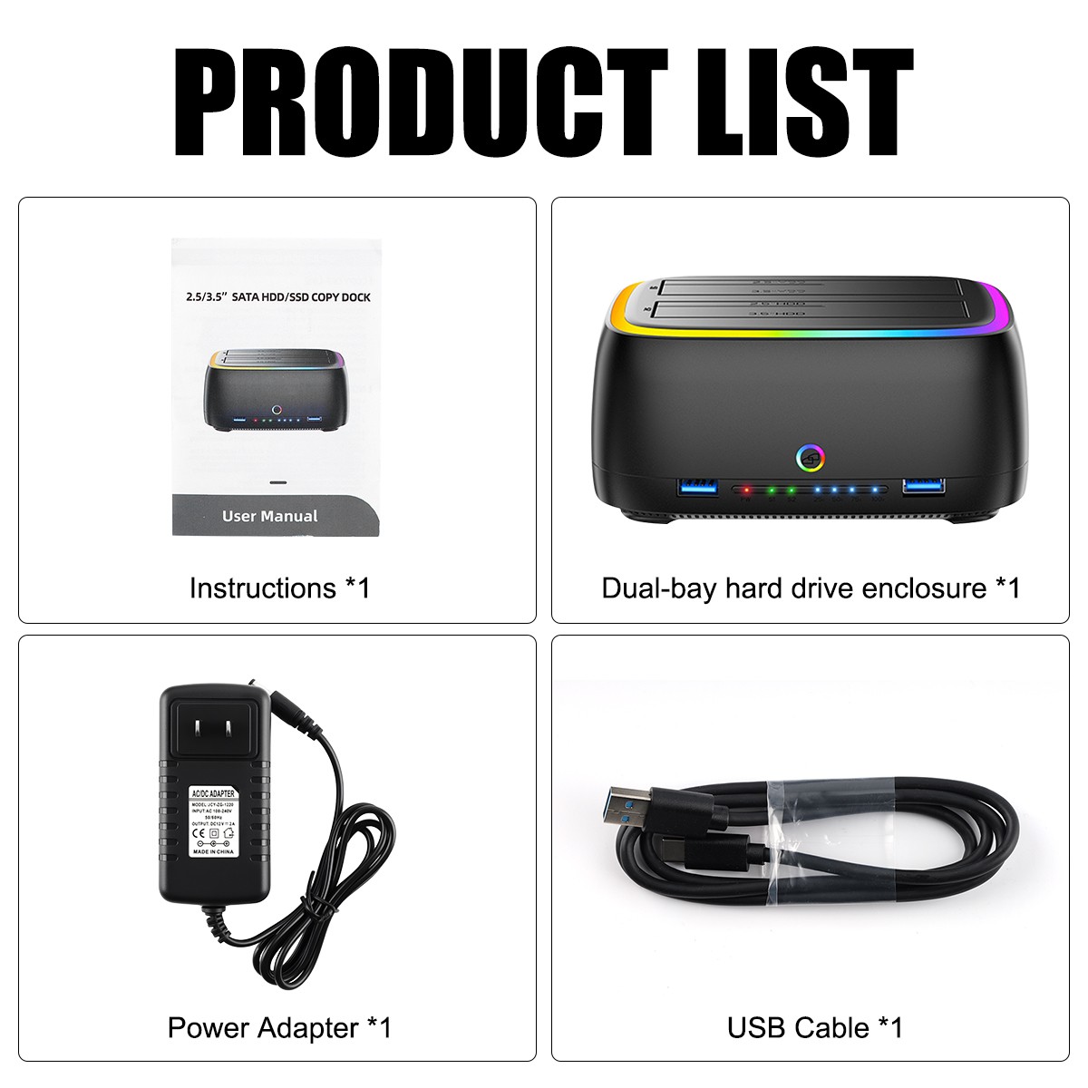 USB Type-C 3.1 Dual Bay Docking Station for 2.5/3.5 SATA HDD/SSD Offline Clone