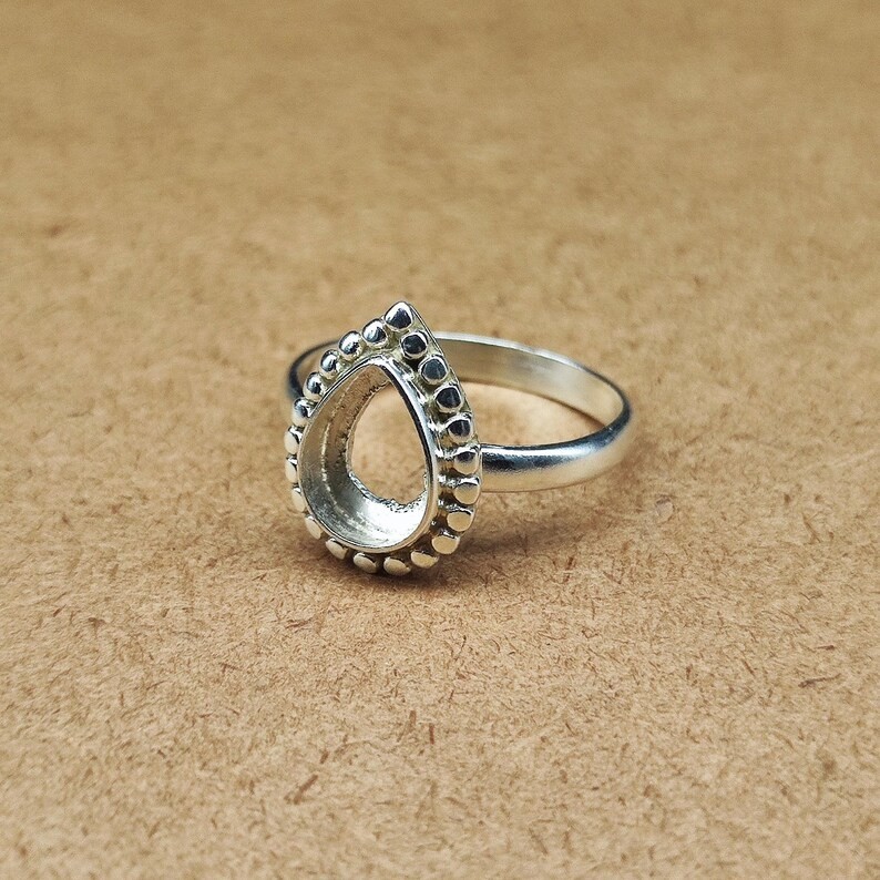 Handmade 925 Sterling Silver Pear Cabochon Ring Bezel Cup DIY Jewelry 8x10mm