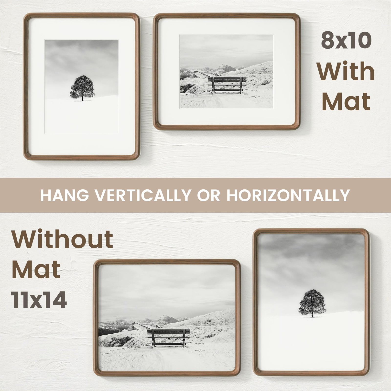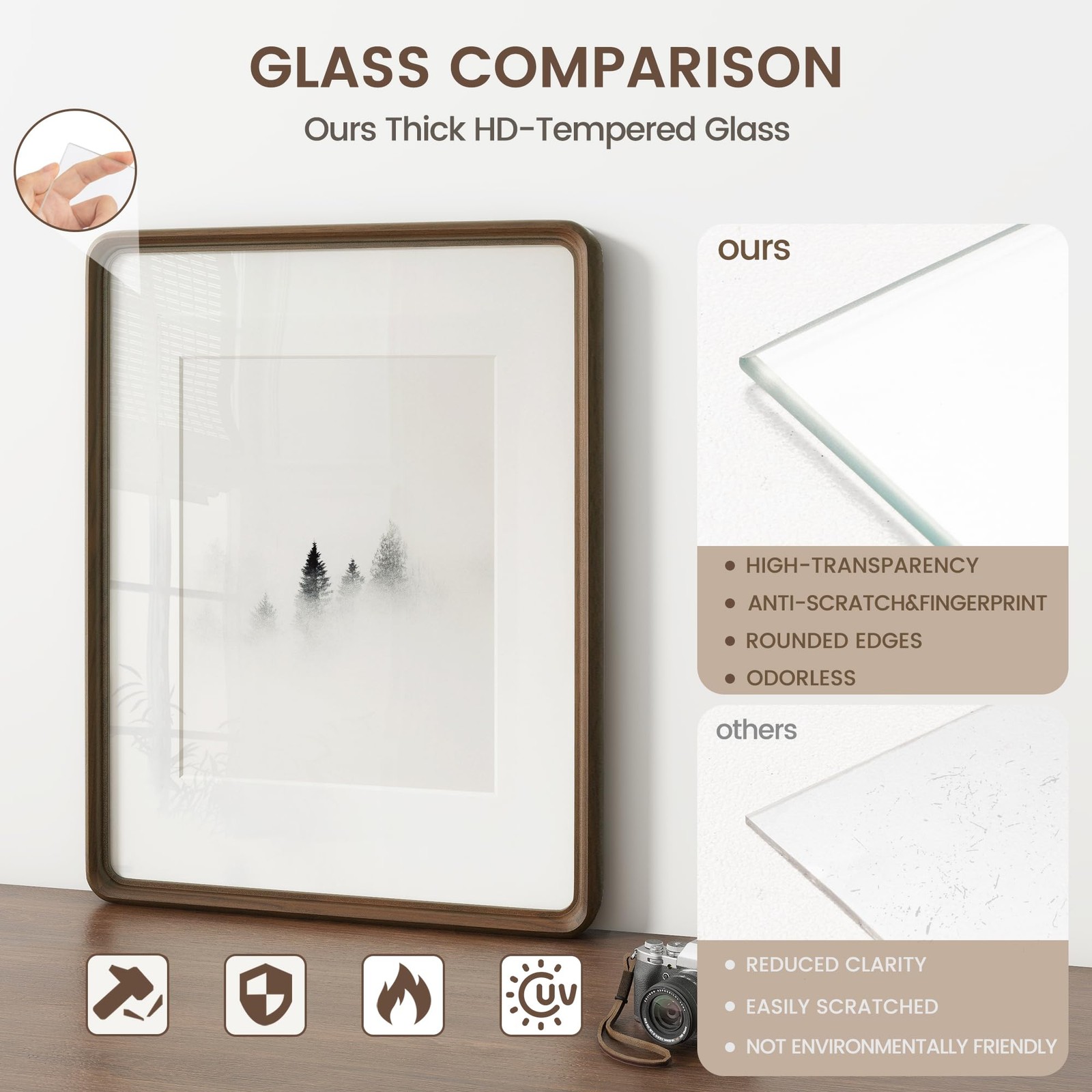 11x14 Picture Frame, USA-Sourced Natural Walnut Wood Photo Frame with Tempere...