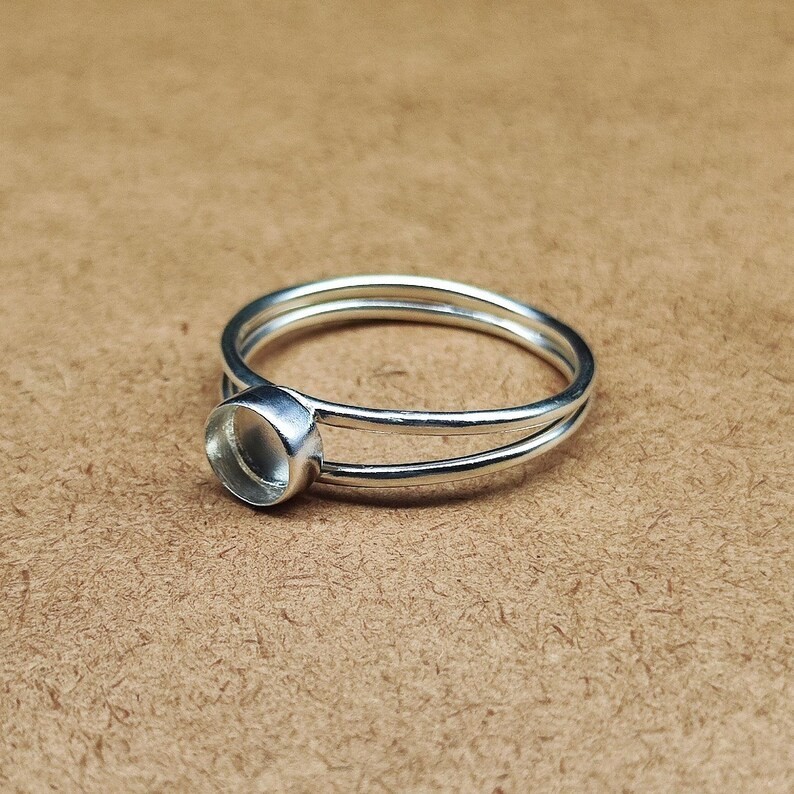 Handmade 925 Sterling Silver Round 10x10mm Bezel Cup Ring DIY Cabochon Setting