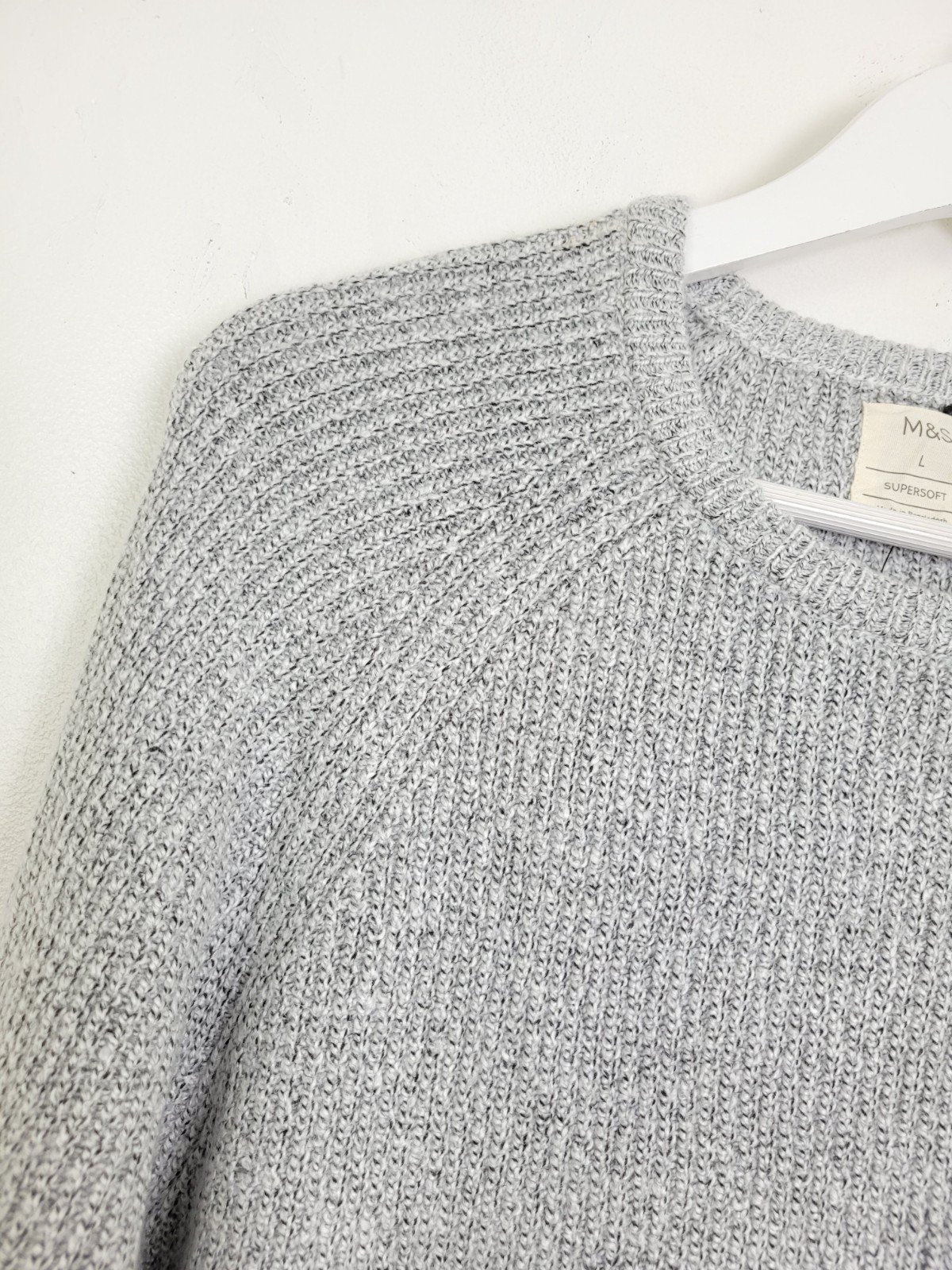 как выглядит M S Mens Supersoft Jumper Size XL Grey Marl Acrylic Blend Raglan Sleeve NEW фото