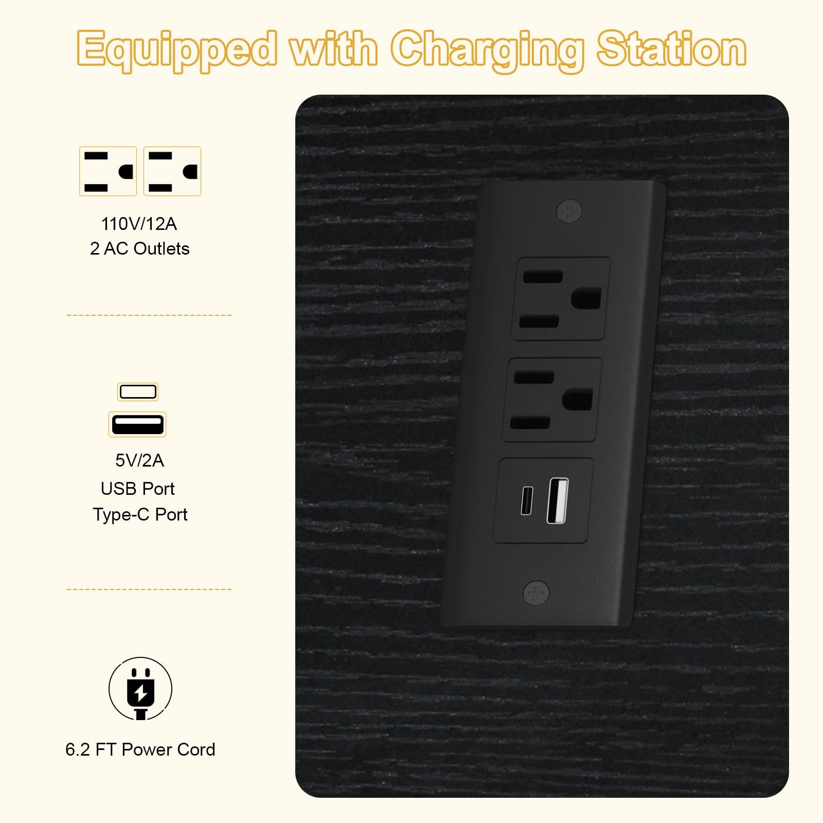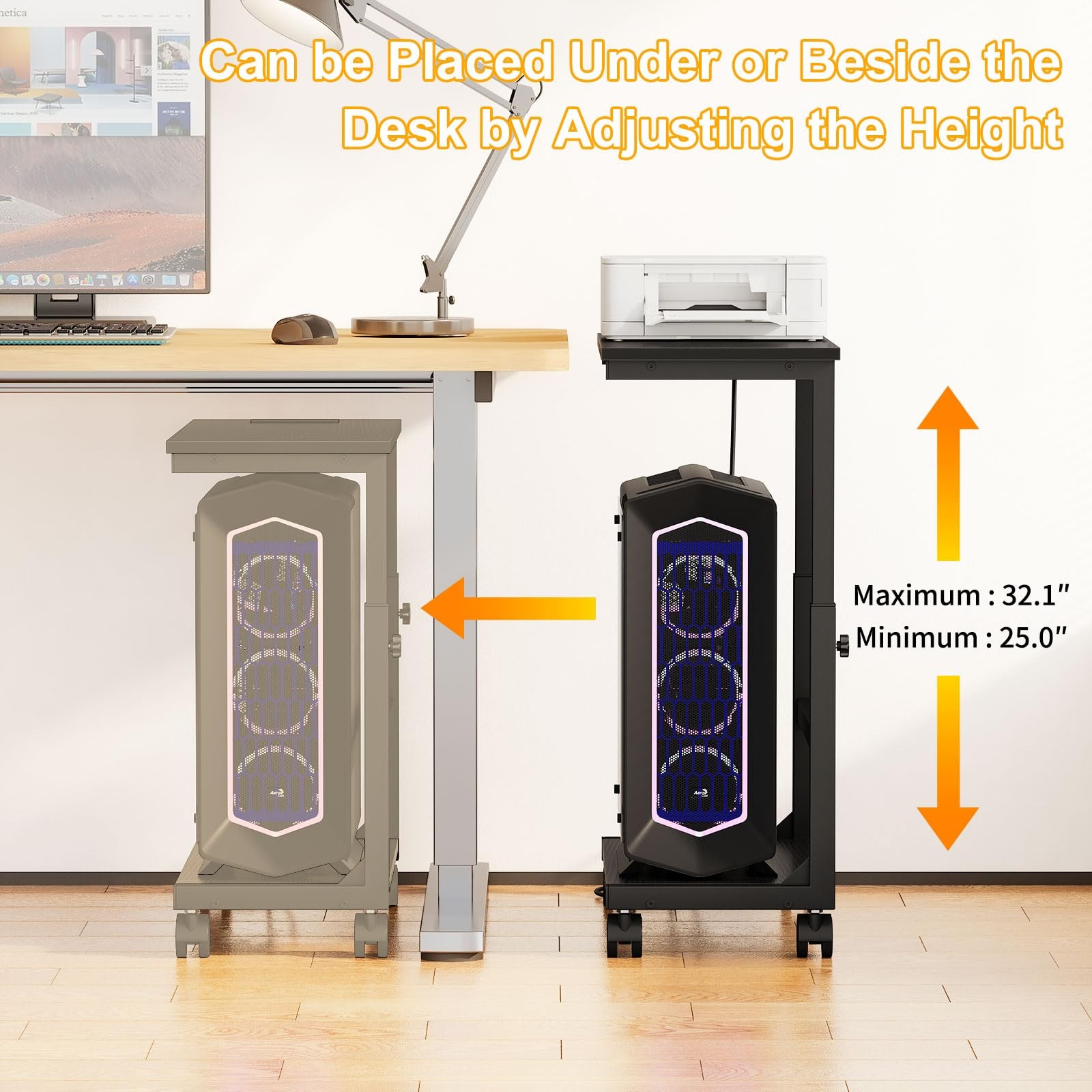 Computer Tower Stand with Charging Station, 25.0-32.1 Height Adjustable PC ...