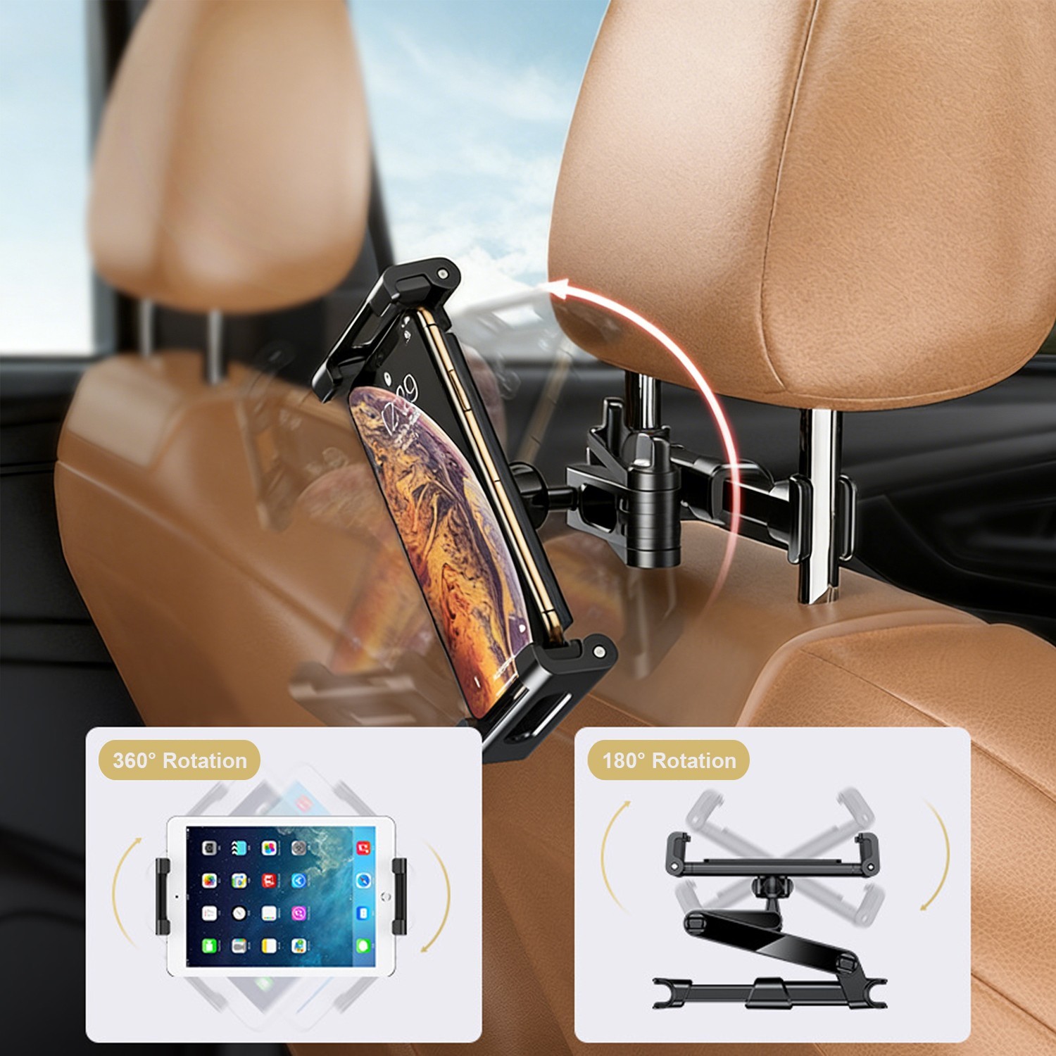 Car Headrest Tablet Holders Phone Mounts 360 Rotating Adjustable for iPad iPhone