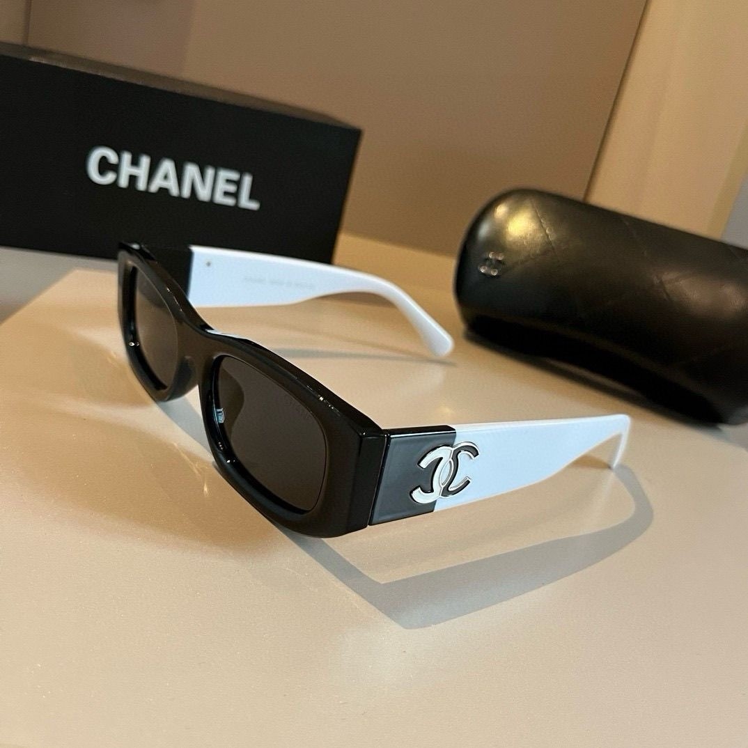 как выглядит CHANEL 5525 POLARIZED BLACK WHITE RECTANGLE SUNGLASSES brand new фото