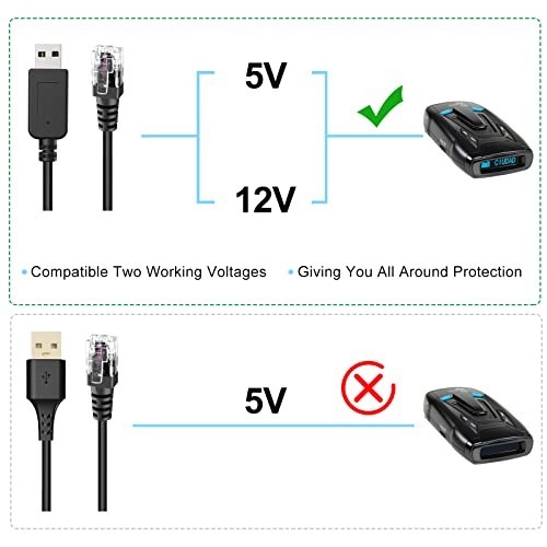 USB to RJ11 Plug Cable for Radar Detectors - 1.6ft Replacement Power Cable
