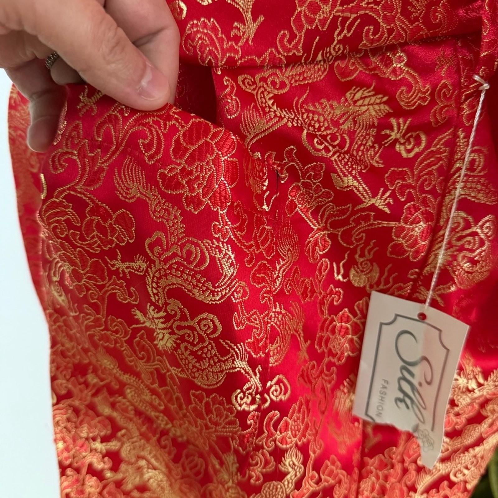 Silk Fashion Dragon Red and Gold Kimono Robe with Pockets NWT