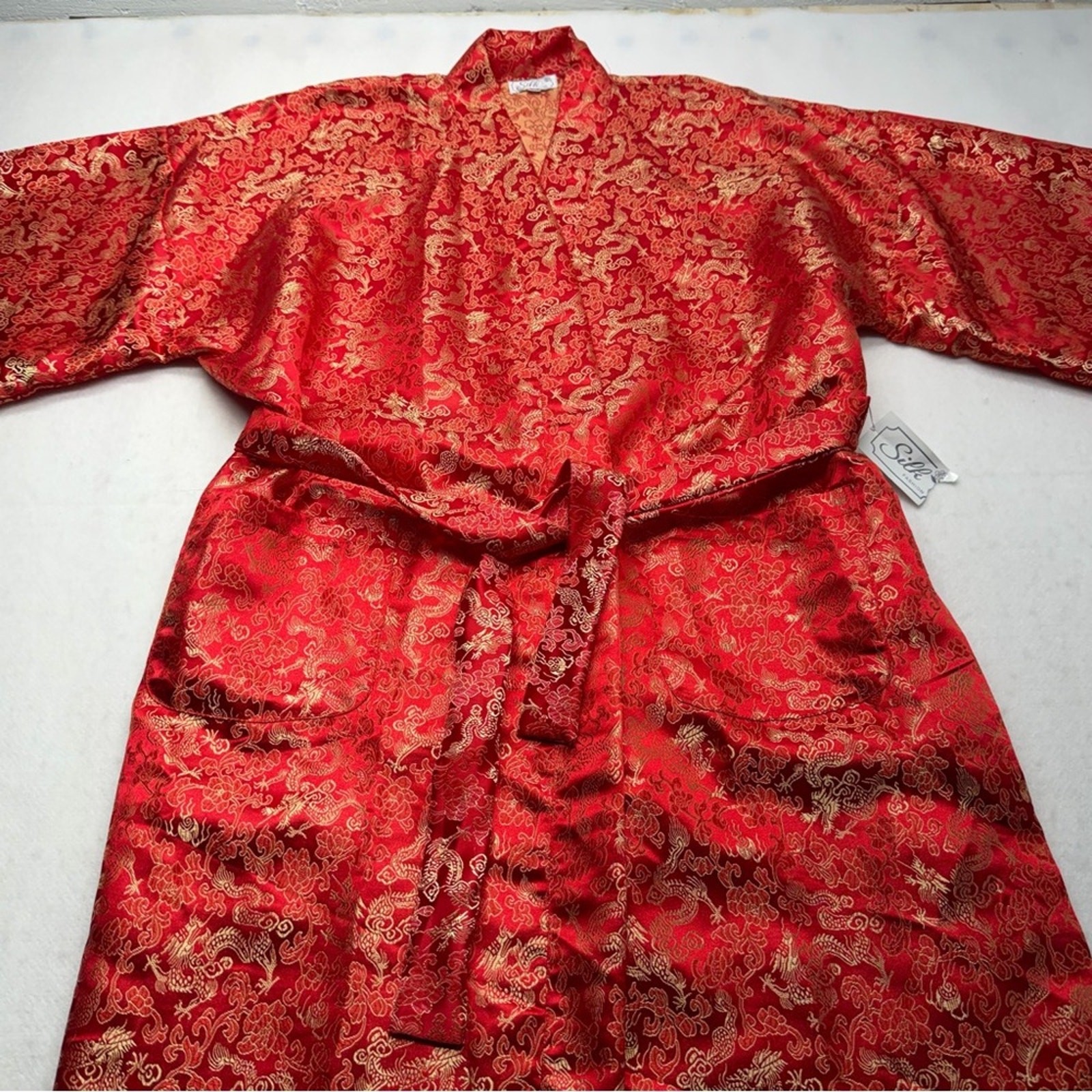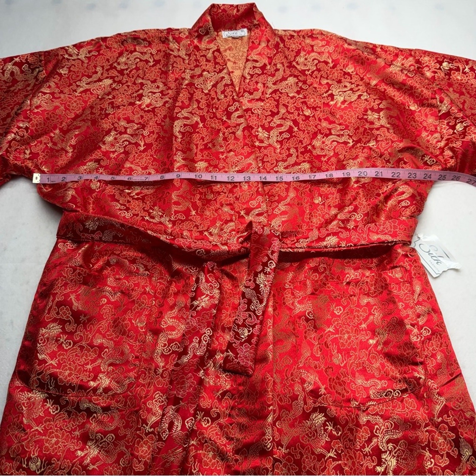 как выглядит Silk Fashion Dragon Red and Gold Kimono Robe with Pockets NWT фото
