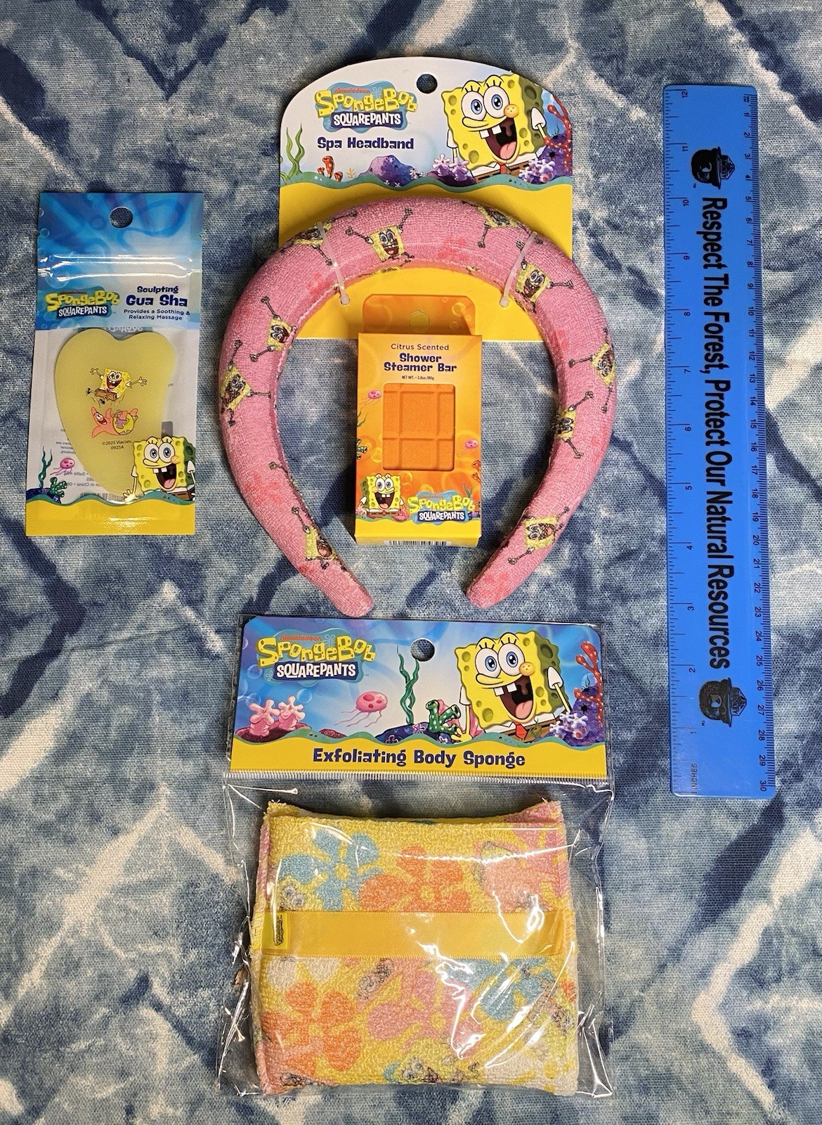 как выглядит SpongeBob SquarePants Spa Set Of 4 Headband, Gua Sha, Shower Steamer, Sponge фото