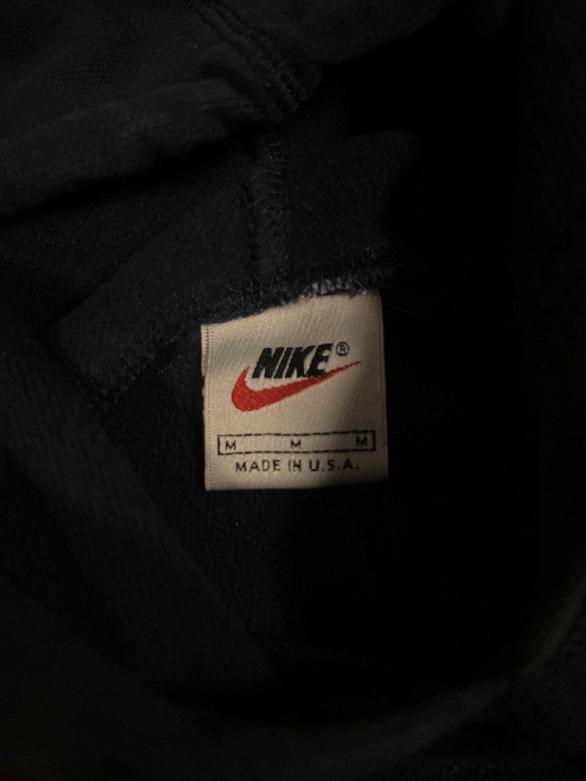 как выглядит Vintage 90s Nike Center Swoosh Hoodie Men s M Navy Embroidered Faded Made In USA фото