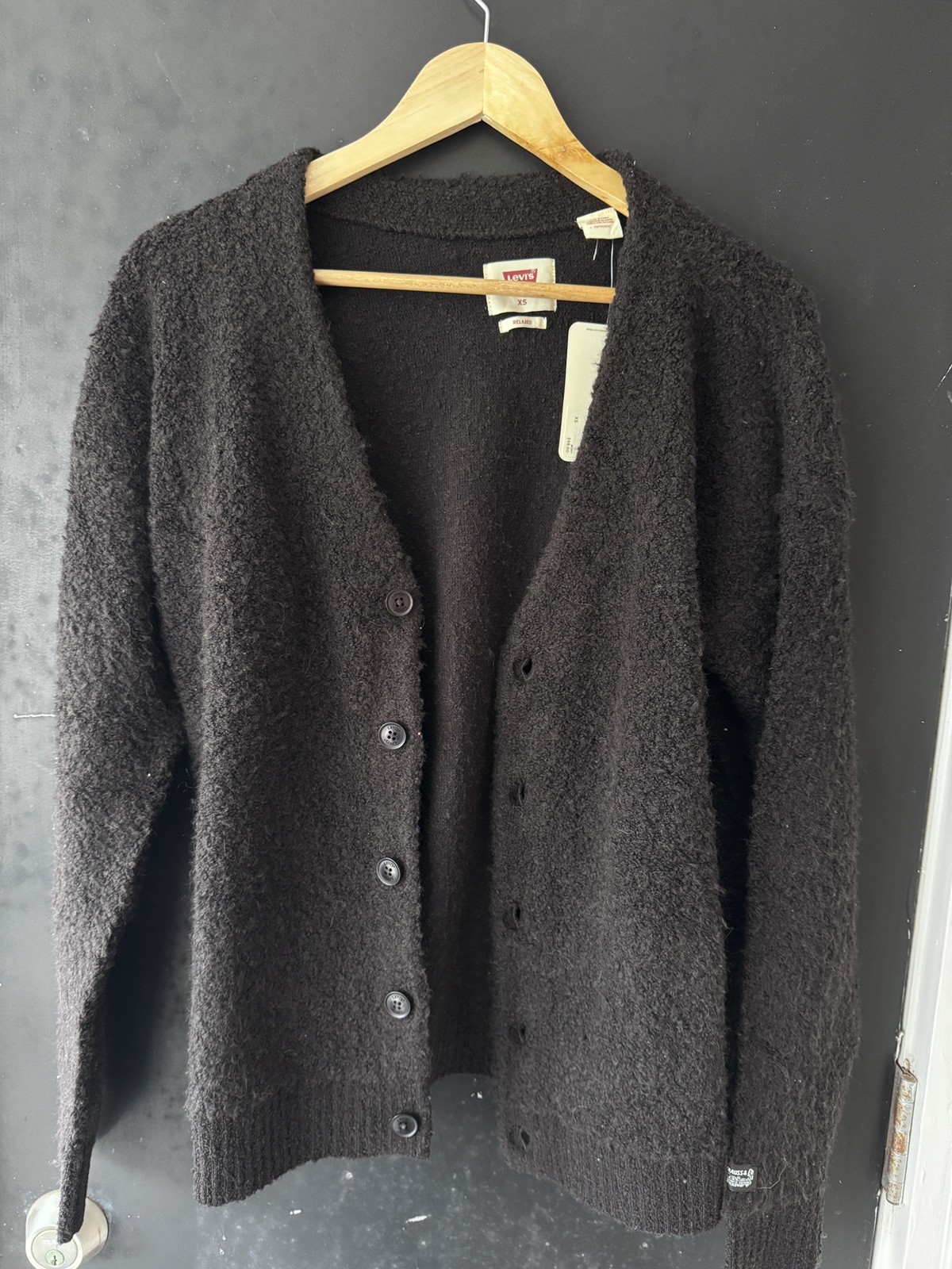 NWT Levi's COIT BOXY CARDIGAN in Black Relaxed Fit Mens XS Fuzzy Wool Blend