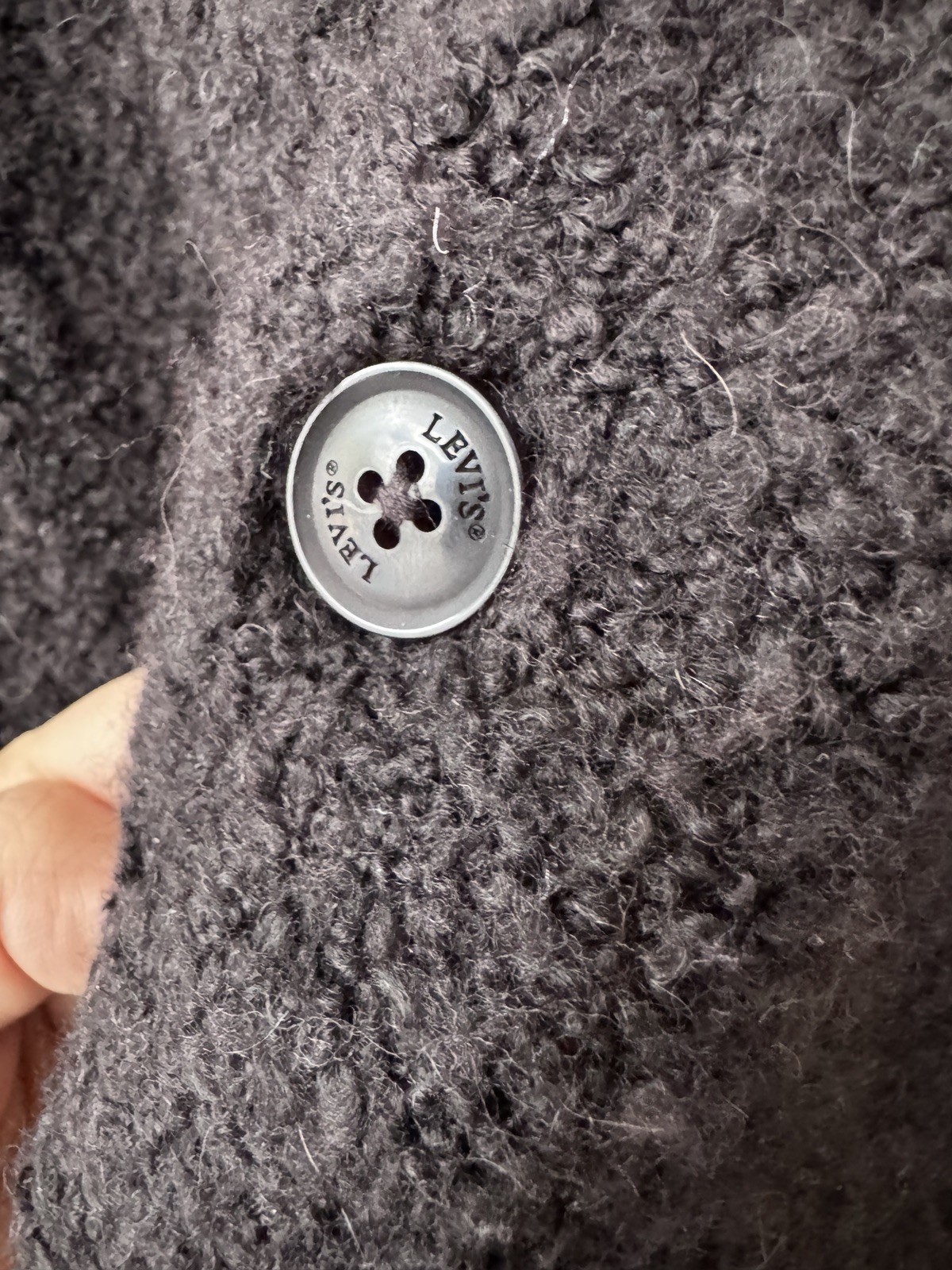 как выглядит NWT Levis COIT BOXY CARDIGAN in Black Relaxed Fit Mens XS Fuzzy Wool Blend фото