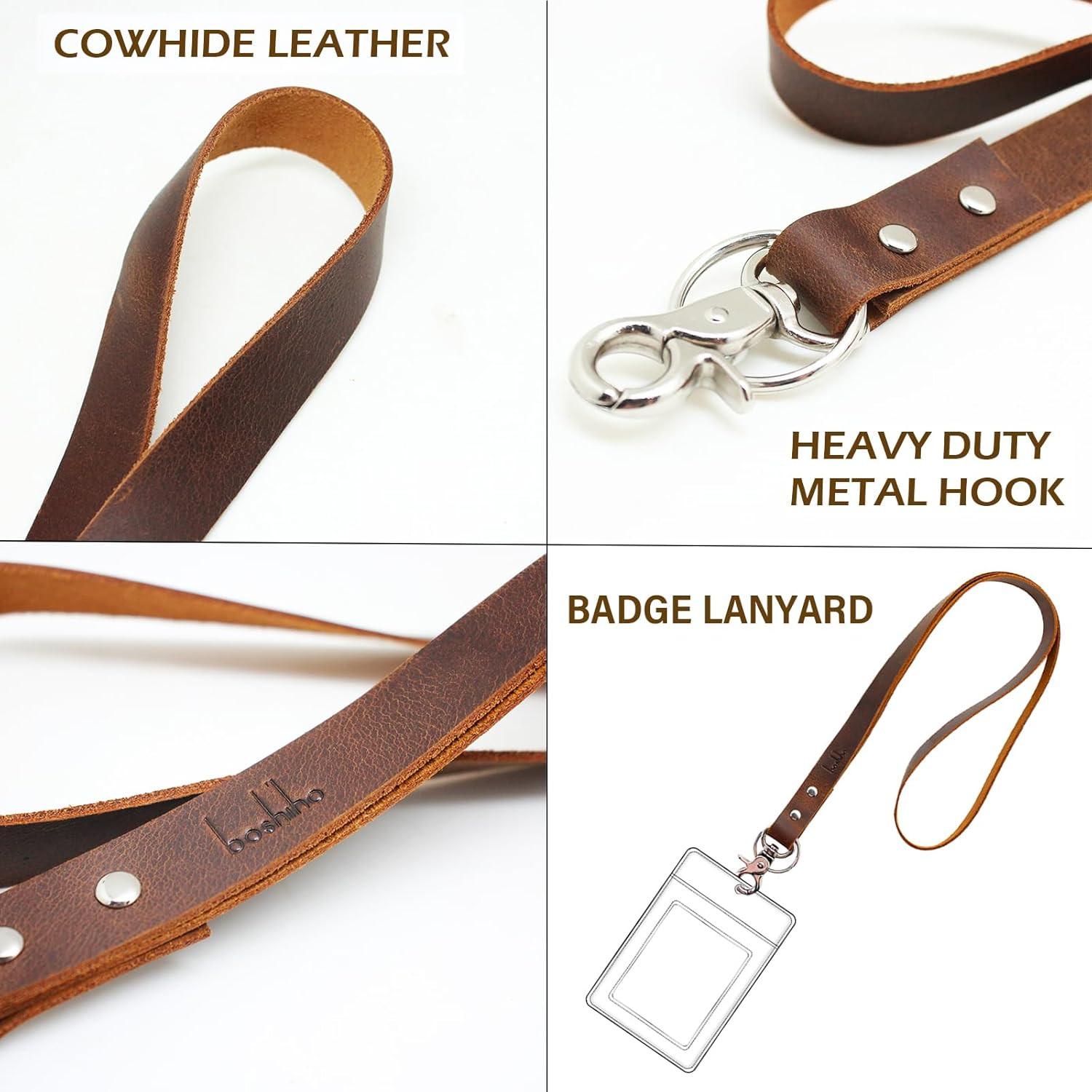 Office Lanyard, PU Leather Necklace Lanyard with Strong Clip and Keychain for Ke