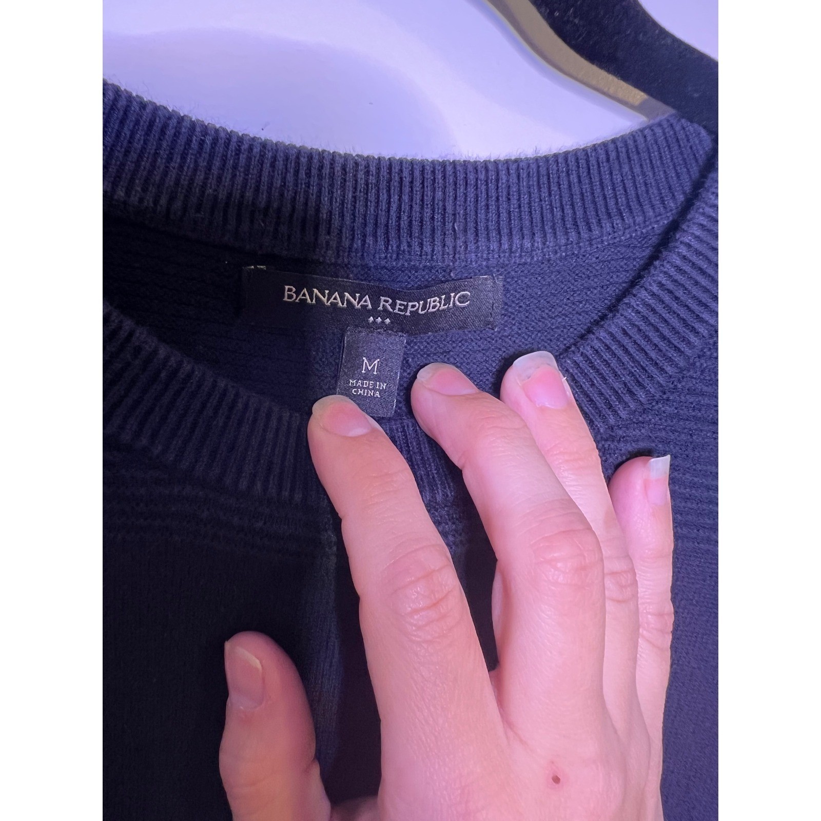 как выглядит Banana Republic Mens Navy Blue Textured Stripe 100 Cotton Crew Neck Sweater M фото