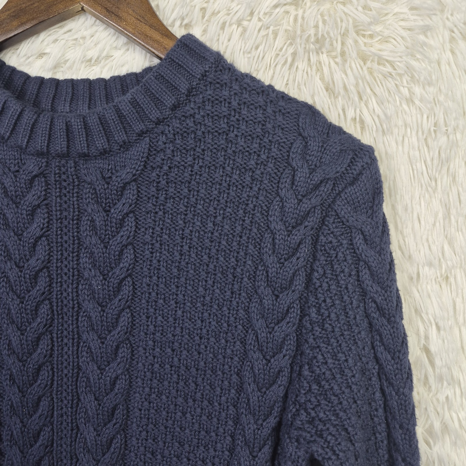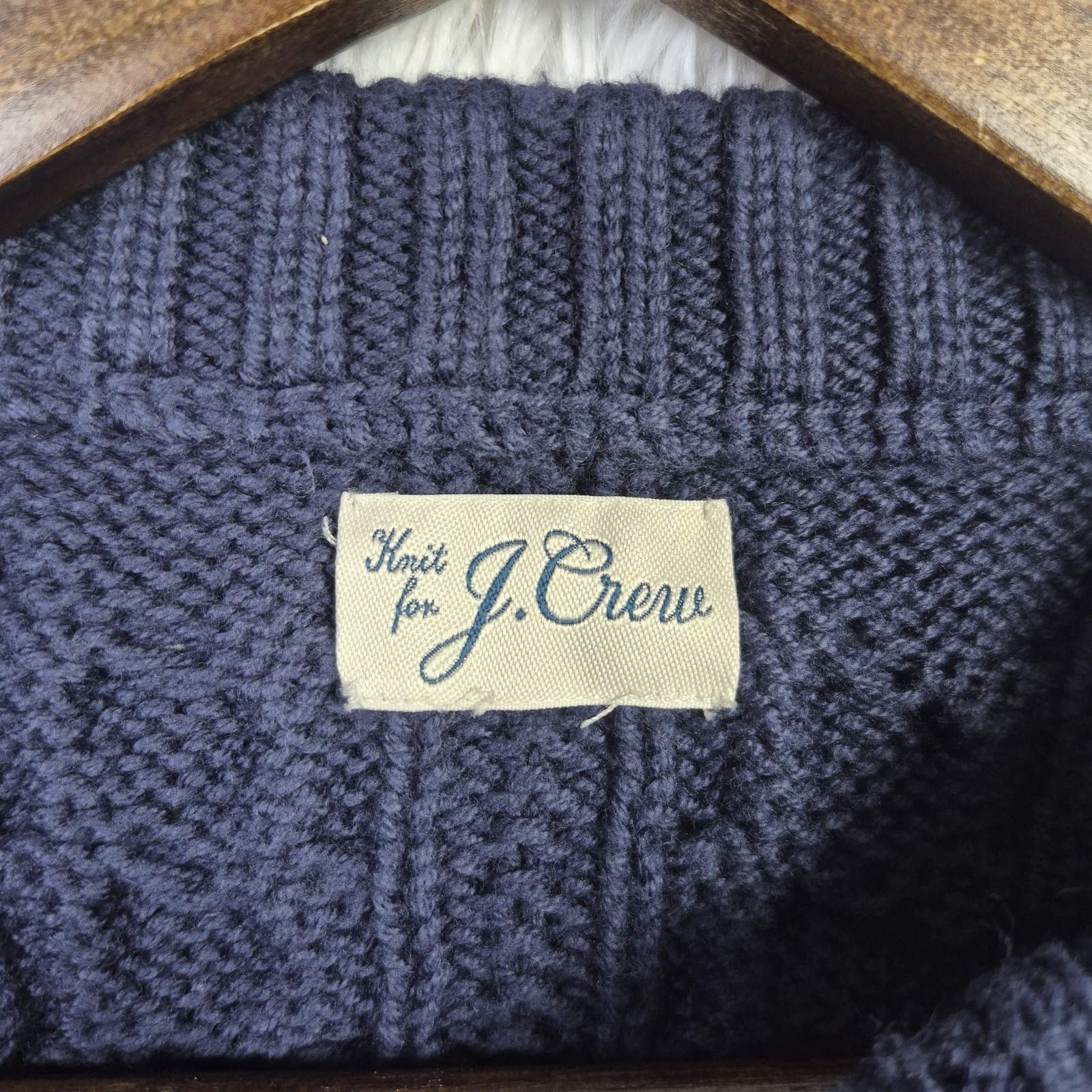 J Crew Mens S Navy Blue Cotton Cable Knit Crewneck Sweater Fisherman Heritage