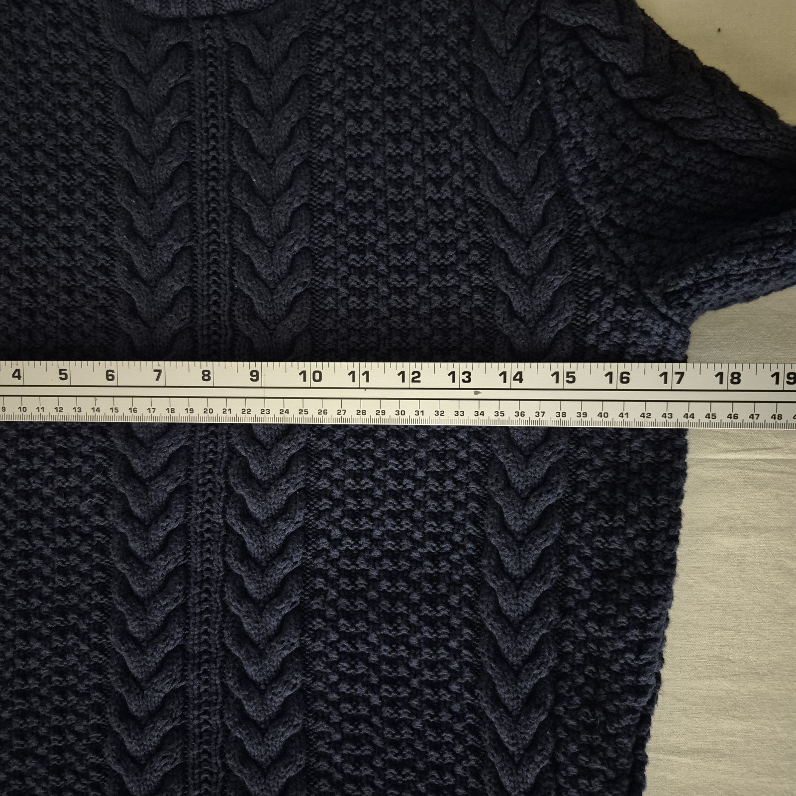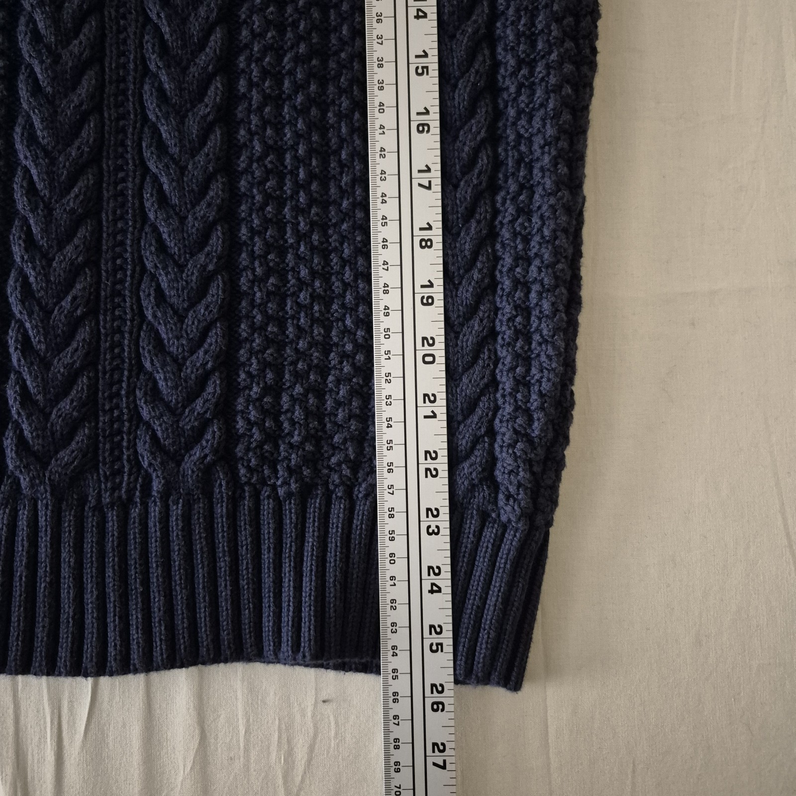 как выглядит J Crew Mens S Navy Blue Cotton Cable Knit Crewneck Sweater Fisherman Heritage фото