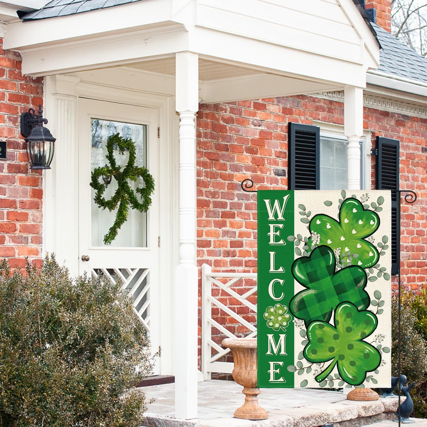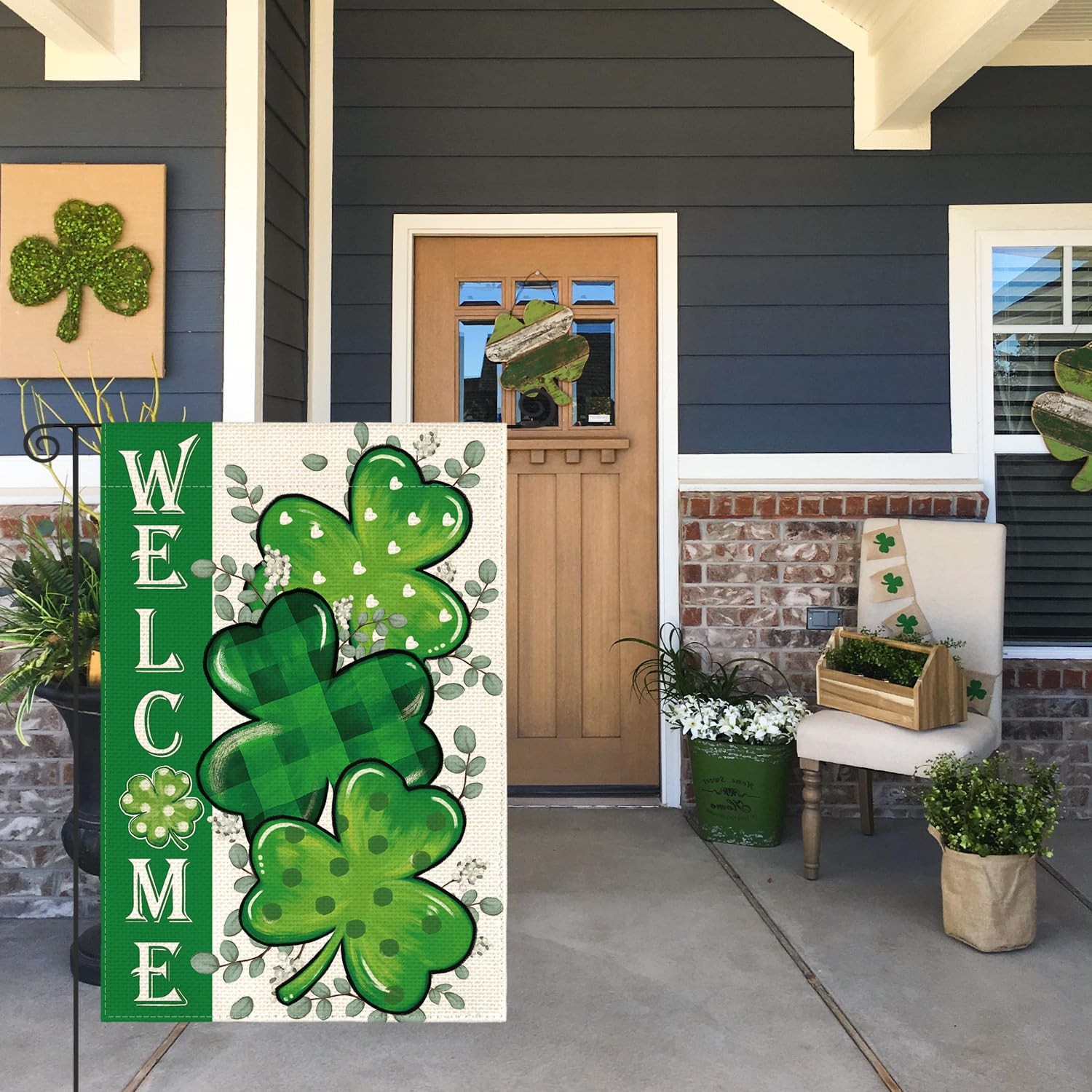 • St Patricks Day Garden Flag 12x18 Inch Double Sided Outside, Shamrock Lucky Clov