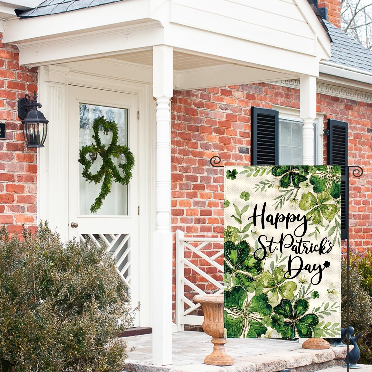 • Happy St Patricks Day Floral Garden Flag 12x18 Inch Double Sided Outside, Shamro
