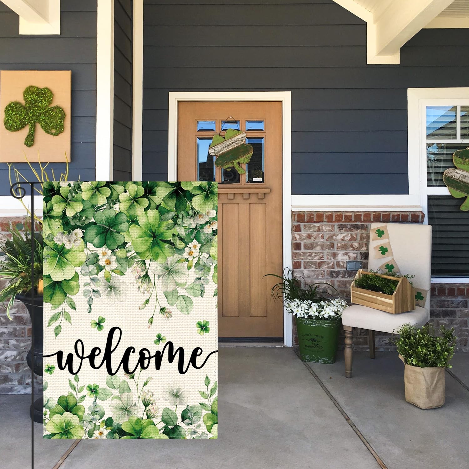 как выглядит St Patricks Day Floral Garden Flag 12x18 Inch Double Sided Outside, Shamrock Luc фото
