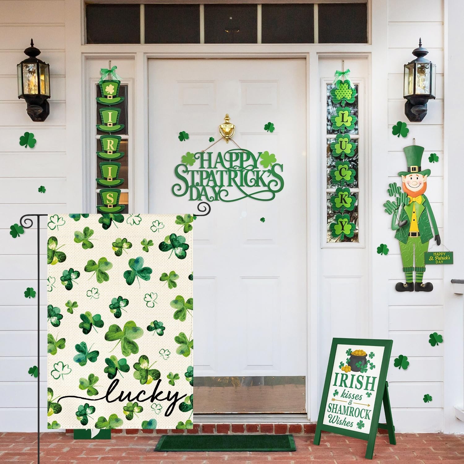 • St Patricks Day Lucky Garden Flag 12x18 Inch Double Sided Outside, Watercolor Fl