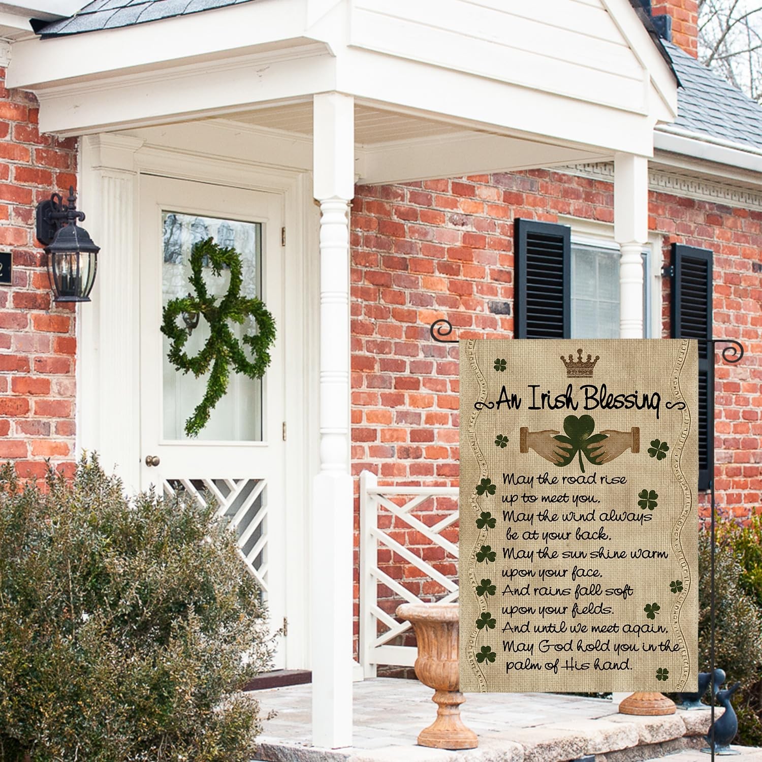 • St Patricks Day Garden Flag 12x18 Inch Double Sided Outside, An Irish Blessing Q