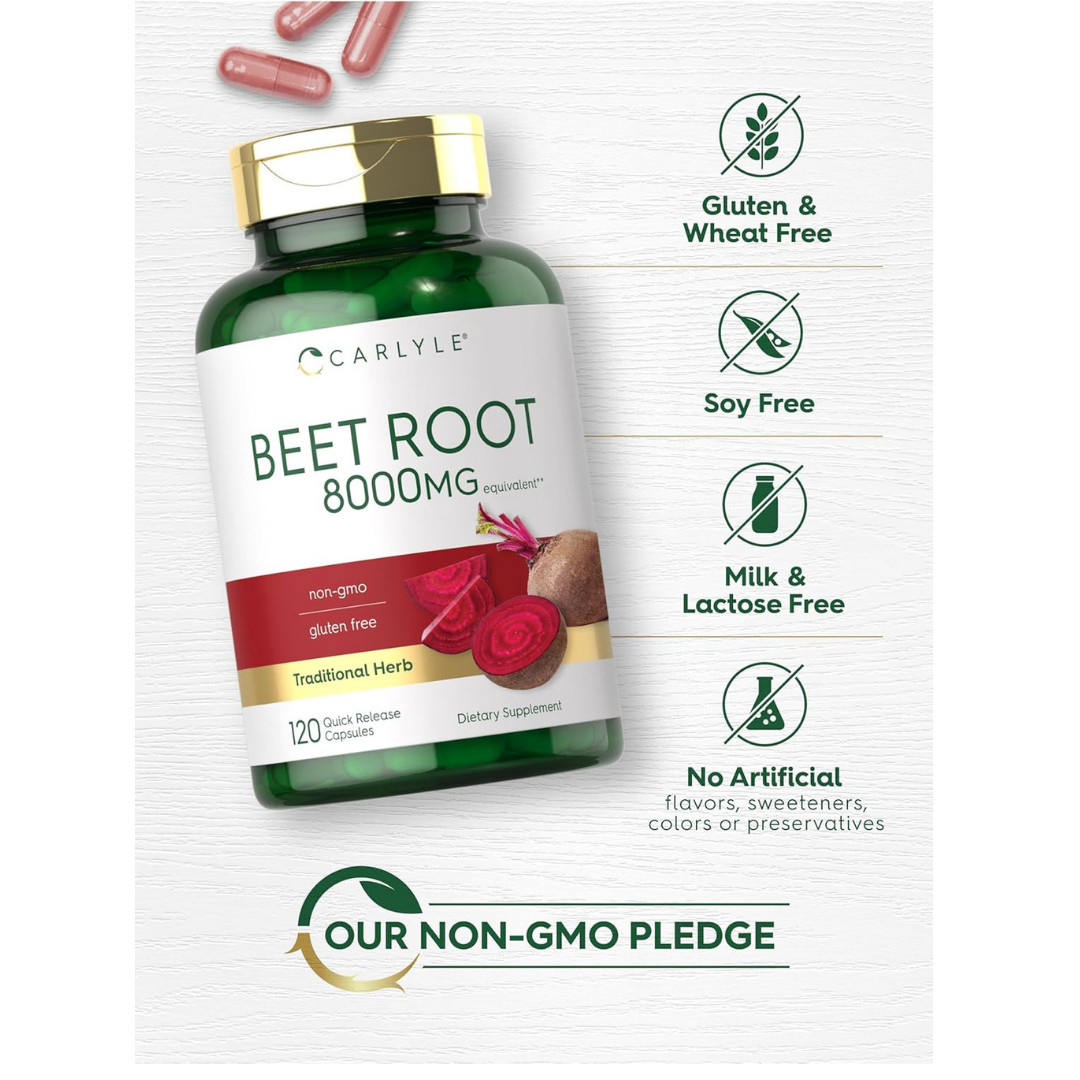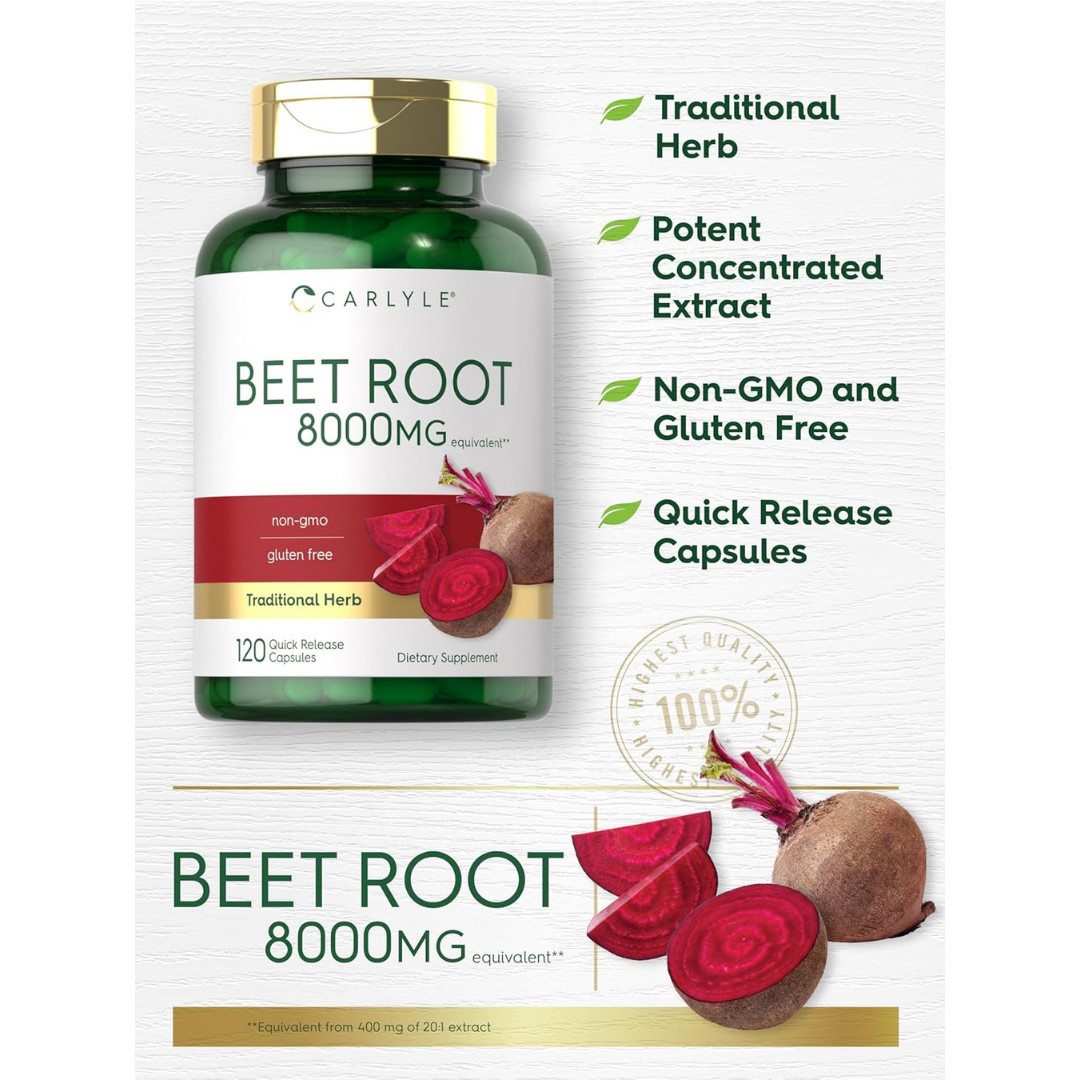 USDA Organic Extra Strength Beet Root 20:1 Extract 8000 mg Strength 120 Capsules