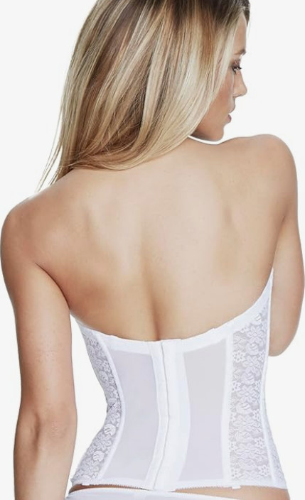 как выглядит Dominique White Basque 32D Strapless Padded Underwired Cups Suspenders Corset фото