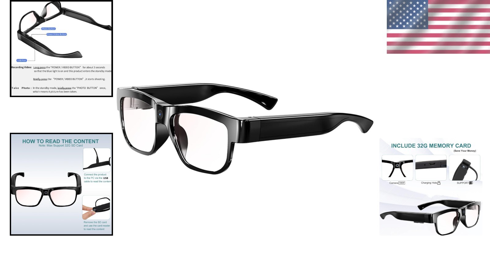 Lightweight Camera Glasses with 32GB Storage for Hiking and Adventure Videos