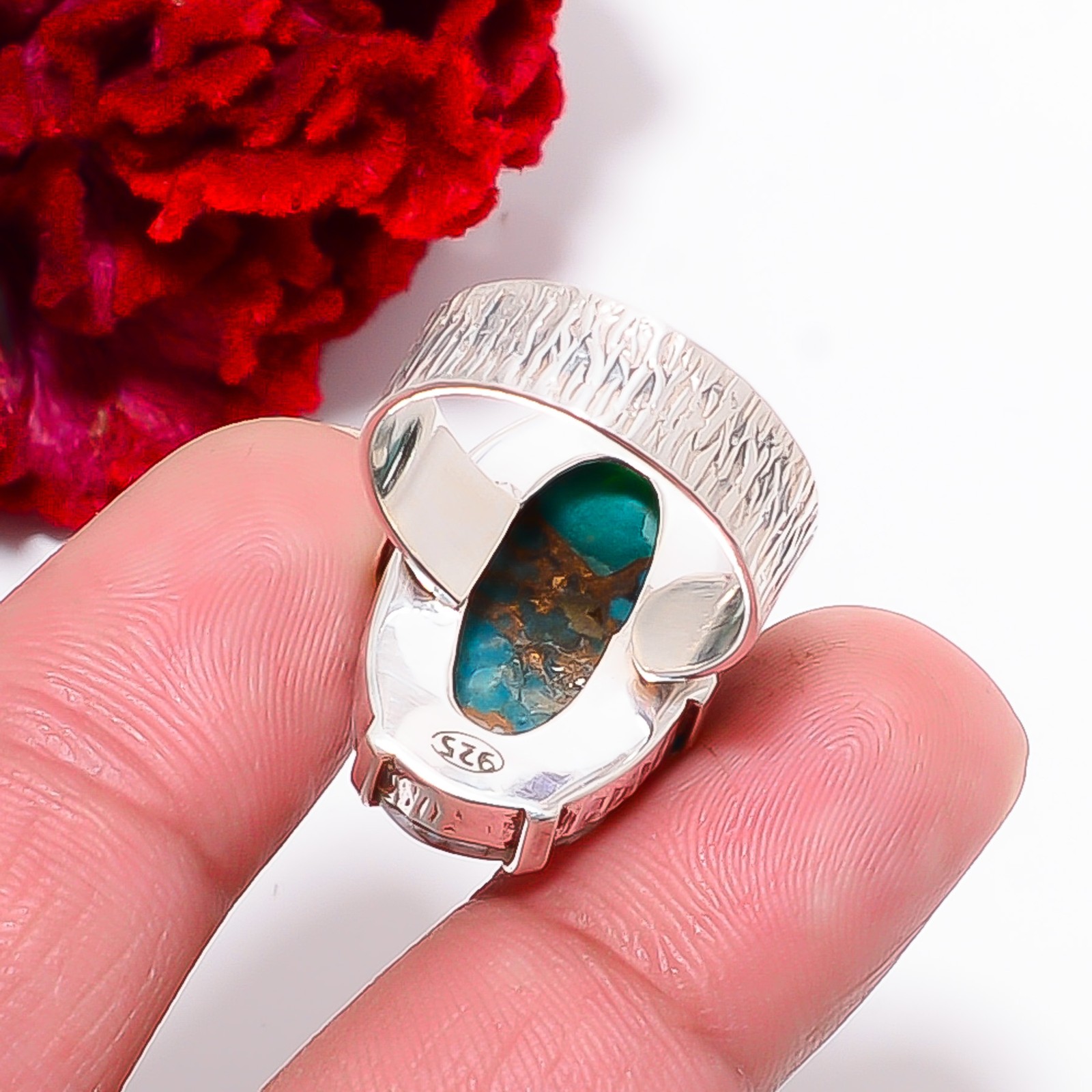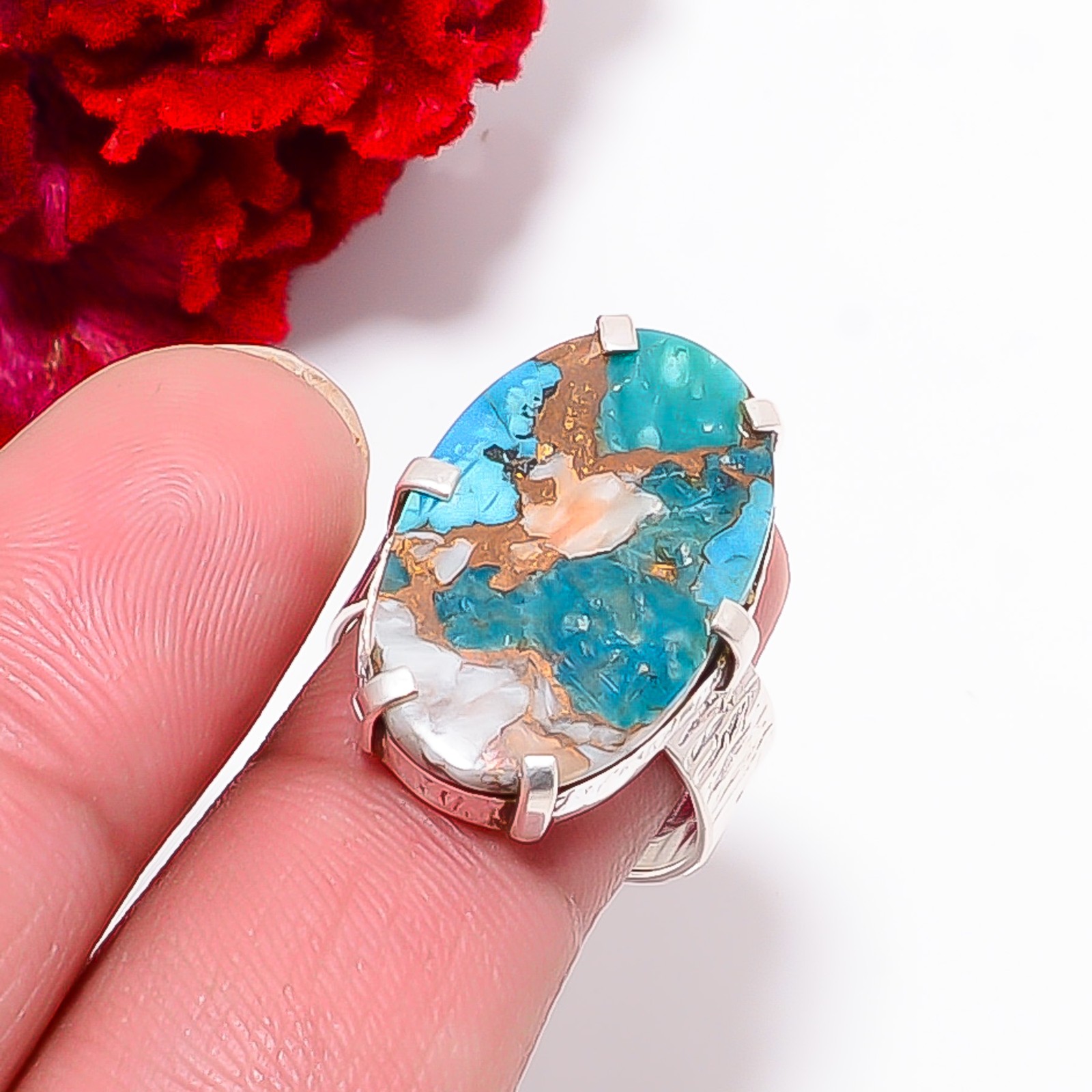 Copper Spiny Oyster Arizona Turquoise Gemstone 925 Sterling Silver Ring S.8 R739
