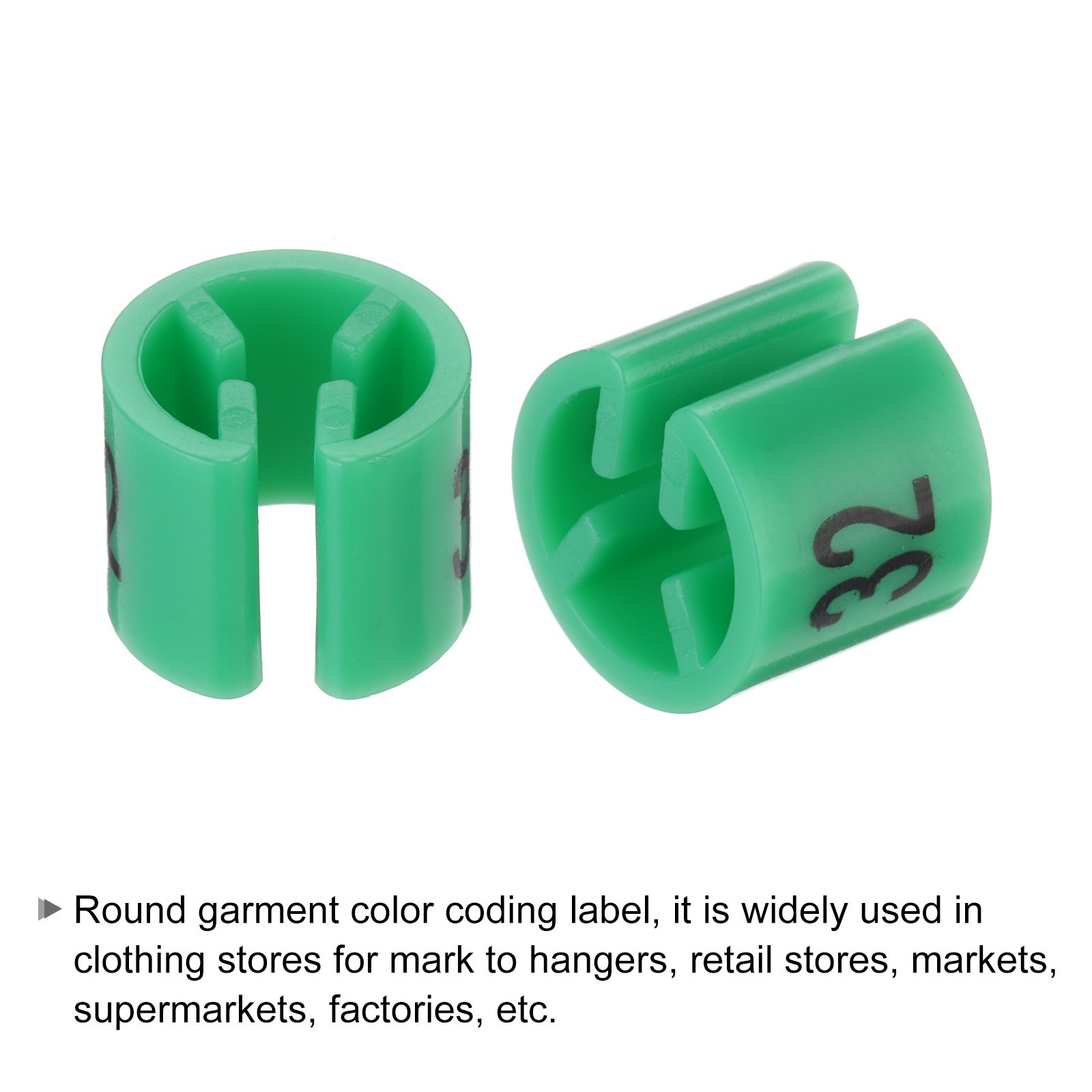 100 Pack Clothes Hanger Marker Number 32 Size Tag Fit 3.5mm Rod Green
