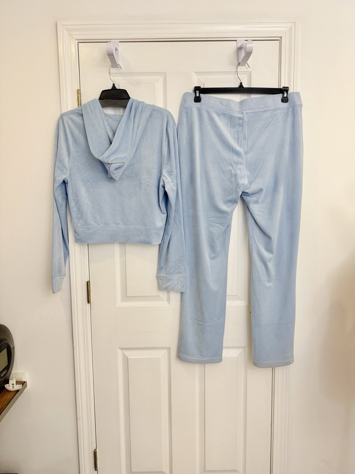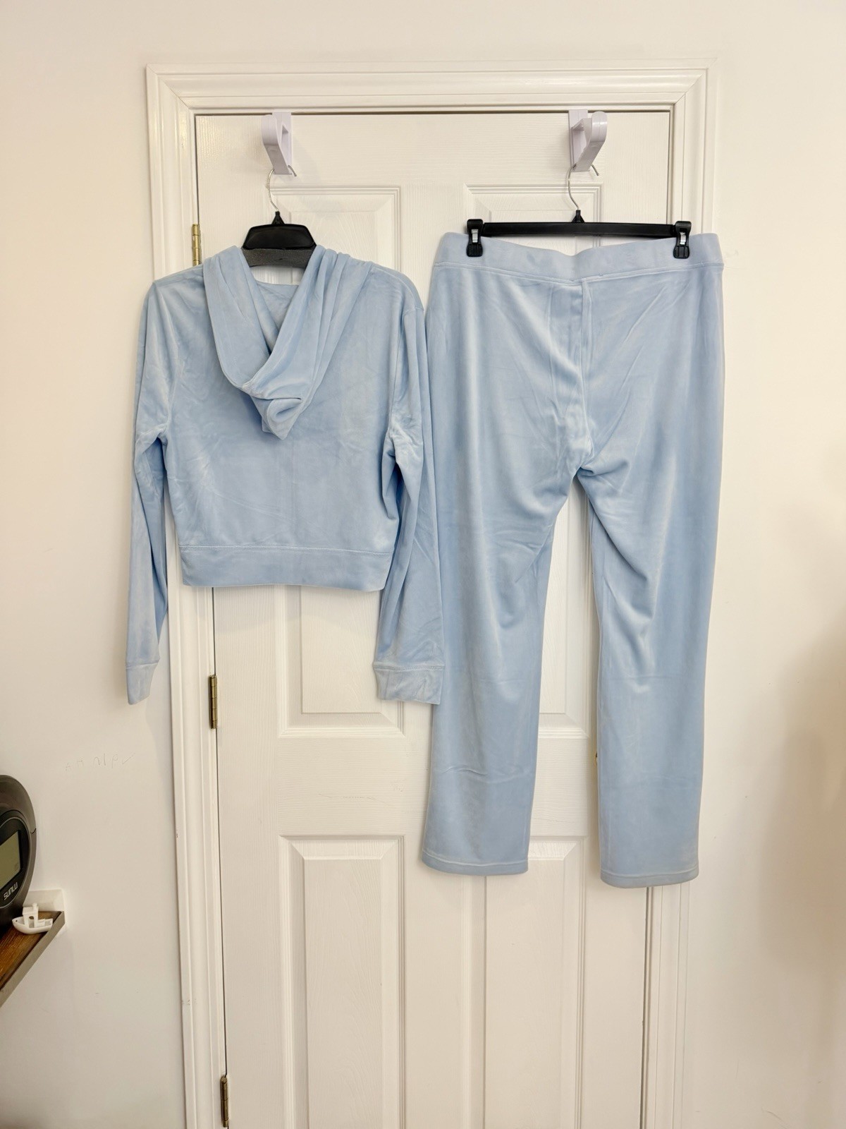 как выглядит New Juicy Couture Frosted Blue Velour Rhinestone Bling Tracksuit Set XL фото