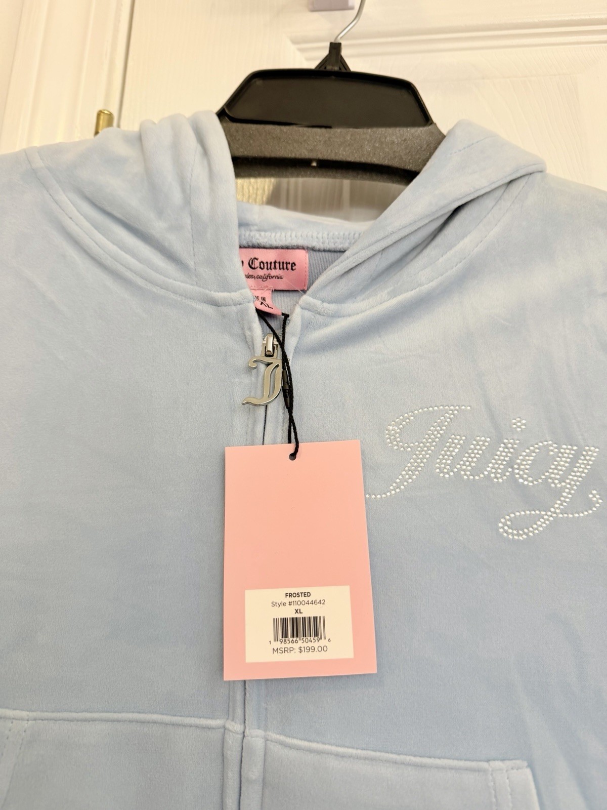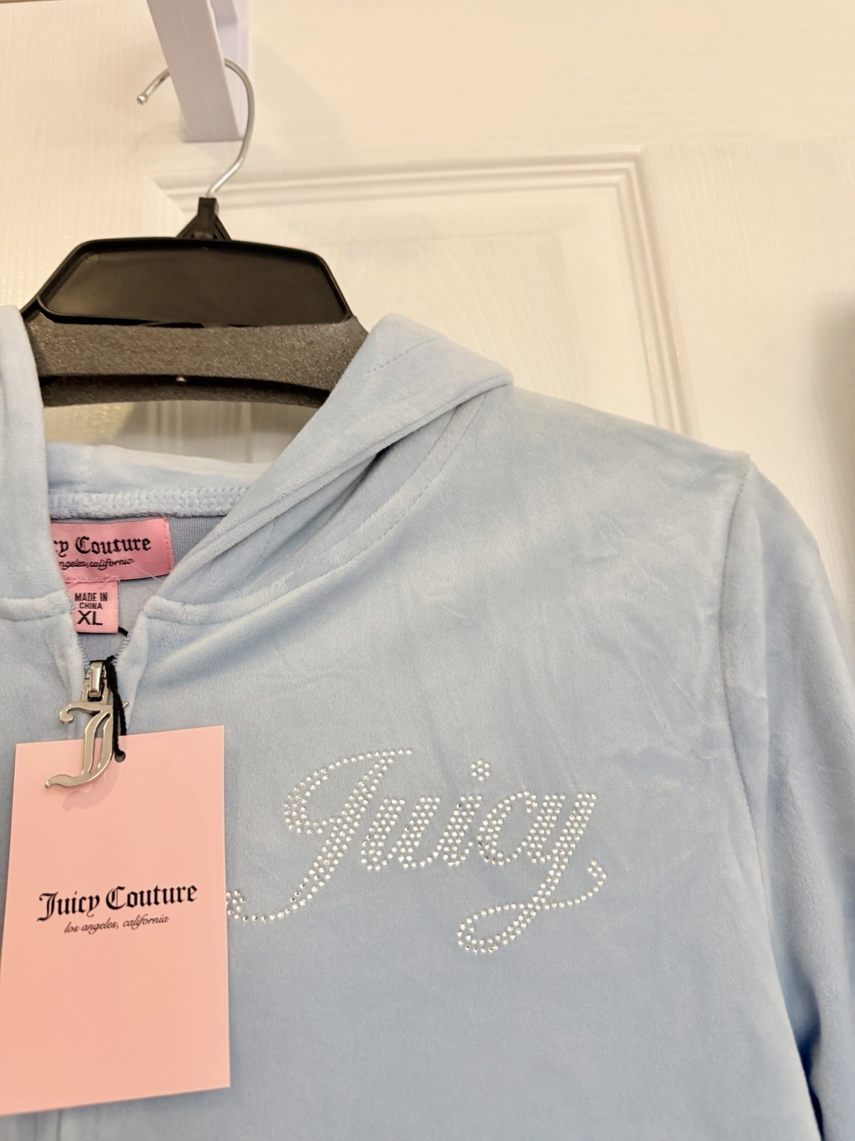 New Juicy Couture Frosted Blue Velour Rhinestone Bling Tracksuit Set XL