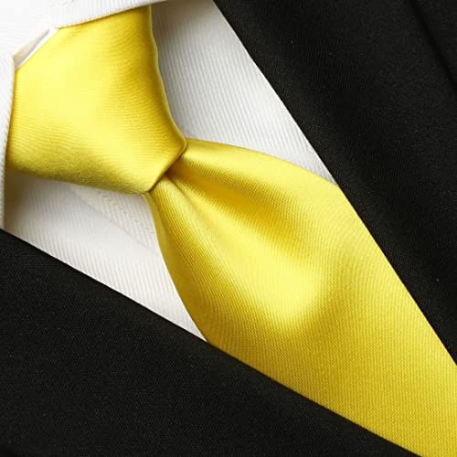 Satin Tie Set Solid Ties Mens Necktie Pocket Square Yellow