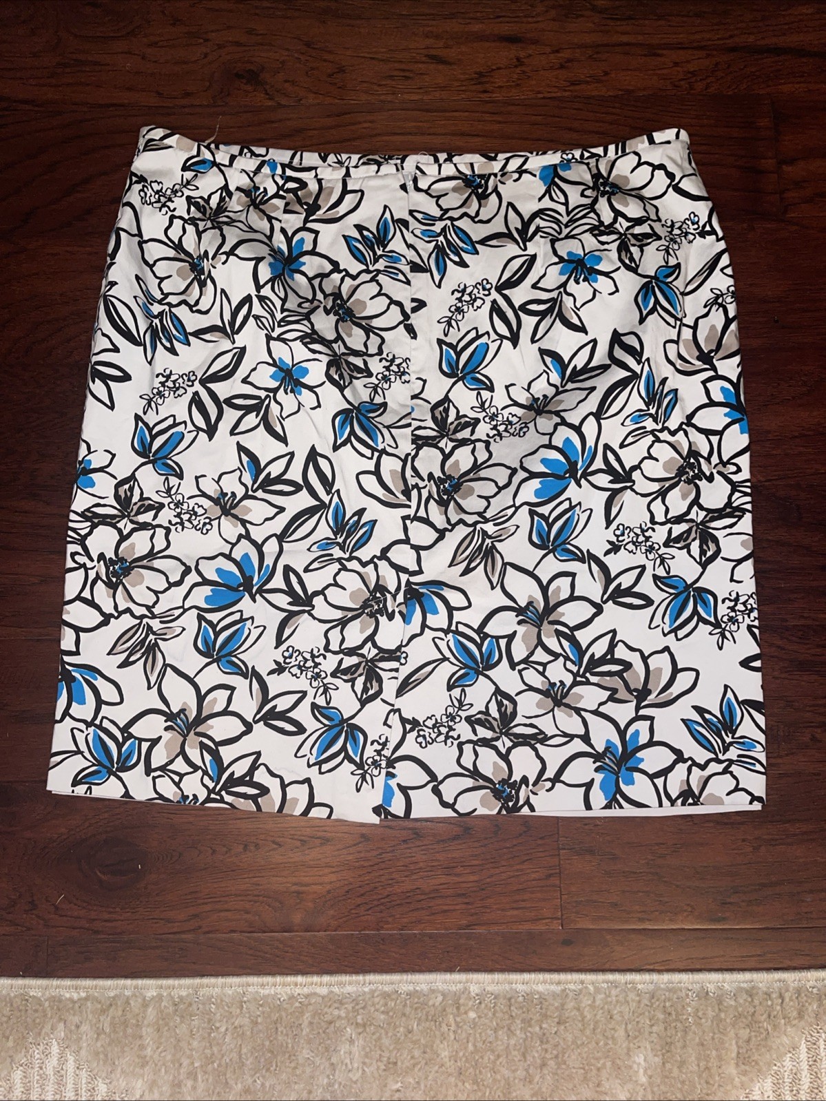 Calvin Klein knee length blue white and black floral skirt Lined 18w